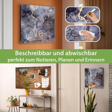Bringe Ordnung und Eleganz in deinen Eingangsbereich mit dem banjado Schlüsselkasten Motiv Lila Marmor mit Gold 1. Die moderne Schlüsselbox kombiniert funktionales Design mit hochwertiger Verarbeitung und wird so zu einem echten Hingucker in Flur, Büro oder Ferienwohnung. ✅ Stilvolle Schlüsselaufbewahrung mit Glasfront im Motiv Motiv Lila Marmor mit Gold 1 Der Design-Schlüsselkasten Motiv Lila Marmor mit Gold 1 bietet Platz für bis zu 50 Schlüssel, die auf 5 stabilen Reihen mit je 10 Haken übersichtlich verstaut werden. Mit seinen kompakten Maßen von 30 x 30 x 5 cm passt die Schlüsselbox perfekt auch in kleinere Räume. Der schwarz lackierte Stahlkorpus mit rechts angeschlagenem Türscharnier harmoniert mit der Glasfront und fügt sich nahtlos in jedes Wohnambiente ein. Ob als Schlüsselorganizer für Zuhause oder als praktische Lösung für Büros, Praxen und Gewerbe, der banjado Schlüsselkasten sorgt für Ordnung und Übersicht. Dank der magnetischen, mit Kreidestiften beschreibbaren Glasfront kannst du Notizen anheften oder Termine direkt auf der Oberfläche festhalten. Die Schlüsselbox Motiv Lila Marmor mit Gold 1 zur Wandmontage wird inklusive Befestigungsmaterial geliefert und ist schnell angebracht. So hast du deine Schlüssel jederzeit griffbereit und zugleich stilvoll verstaut. Mit diesem banjado Schlüsselkasten Motiv Lila Marmor mit Gold 1 kombinierst du praktische Aufbewahrung mit stilvollem Wohndesign. Ob privat oder geschäftlich, die Schlüsselbox sorgt für mehr Ordnung, Übersicht und ein wohnliches Ambiente.Vorteile im Überblick