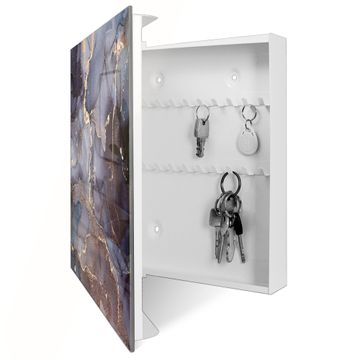 Schlüsselkasten Glas Motiv Lila Marmor mit Gold 1