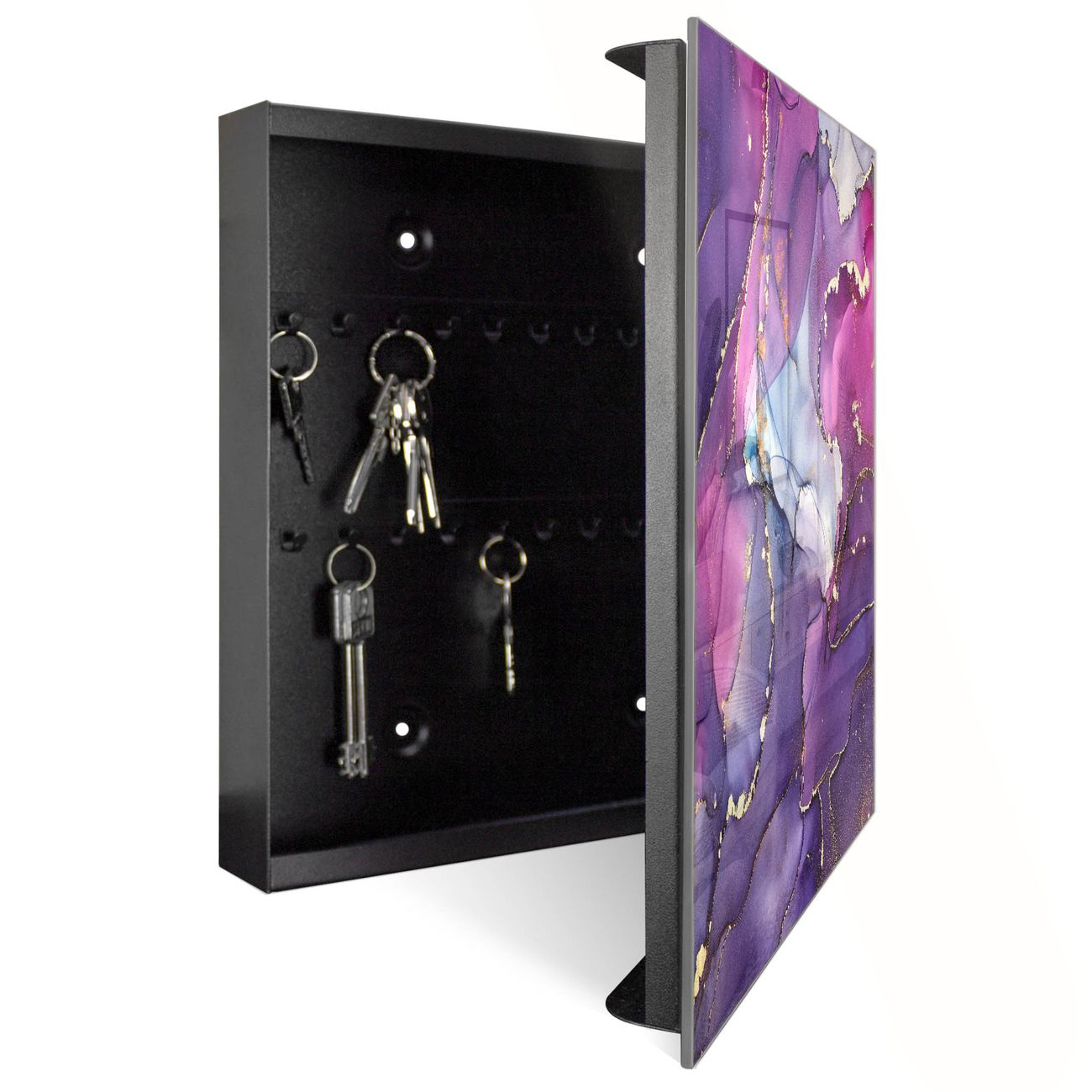 Schlüsselkasten Glas Motiv Lila Marmor mit Gold 2