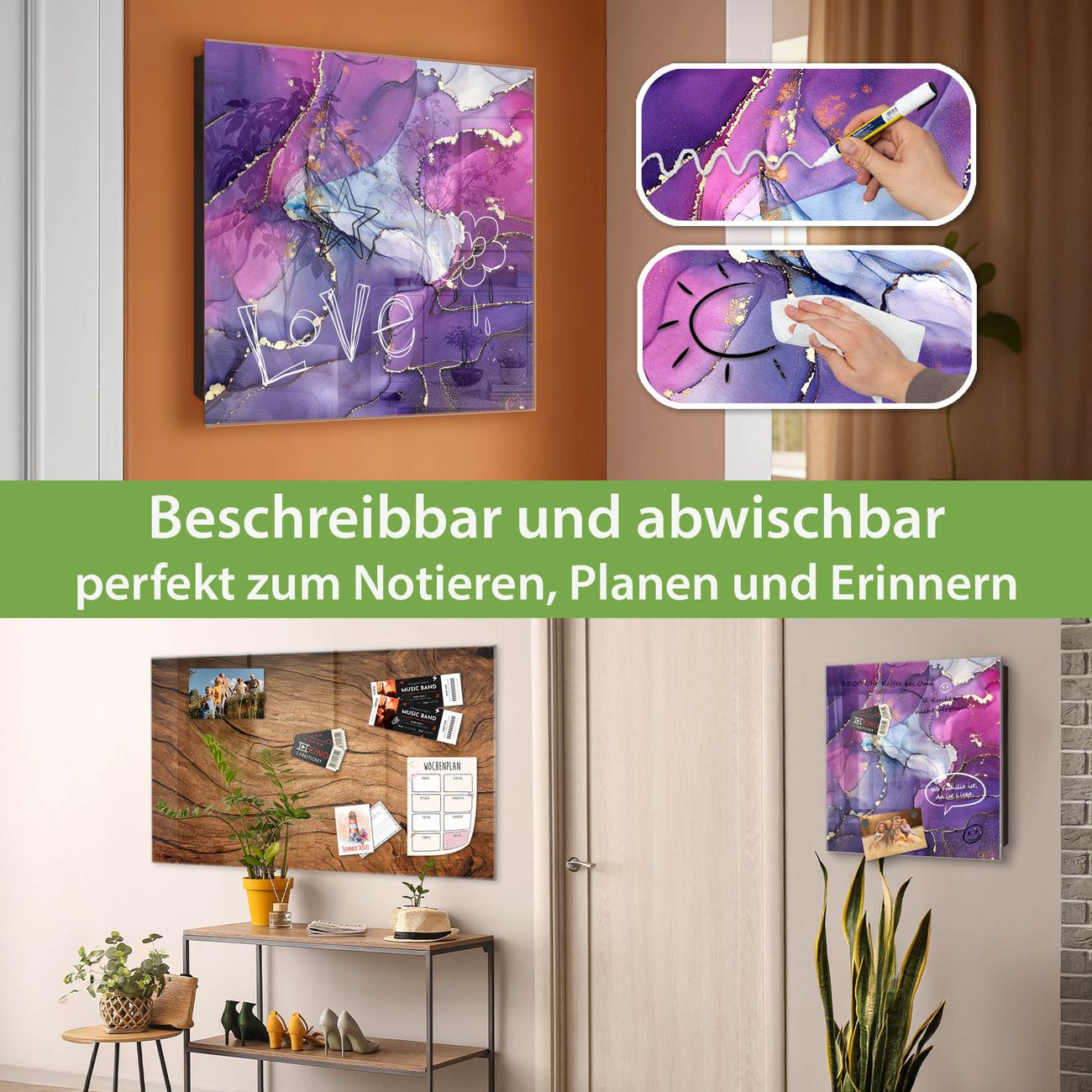 ✅ Magnetisch und mit Kreidestift beschreibbar, gehärtetes Glas, rechts angeschlagene TürOrdnung und Design in einem