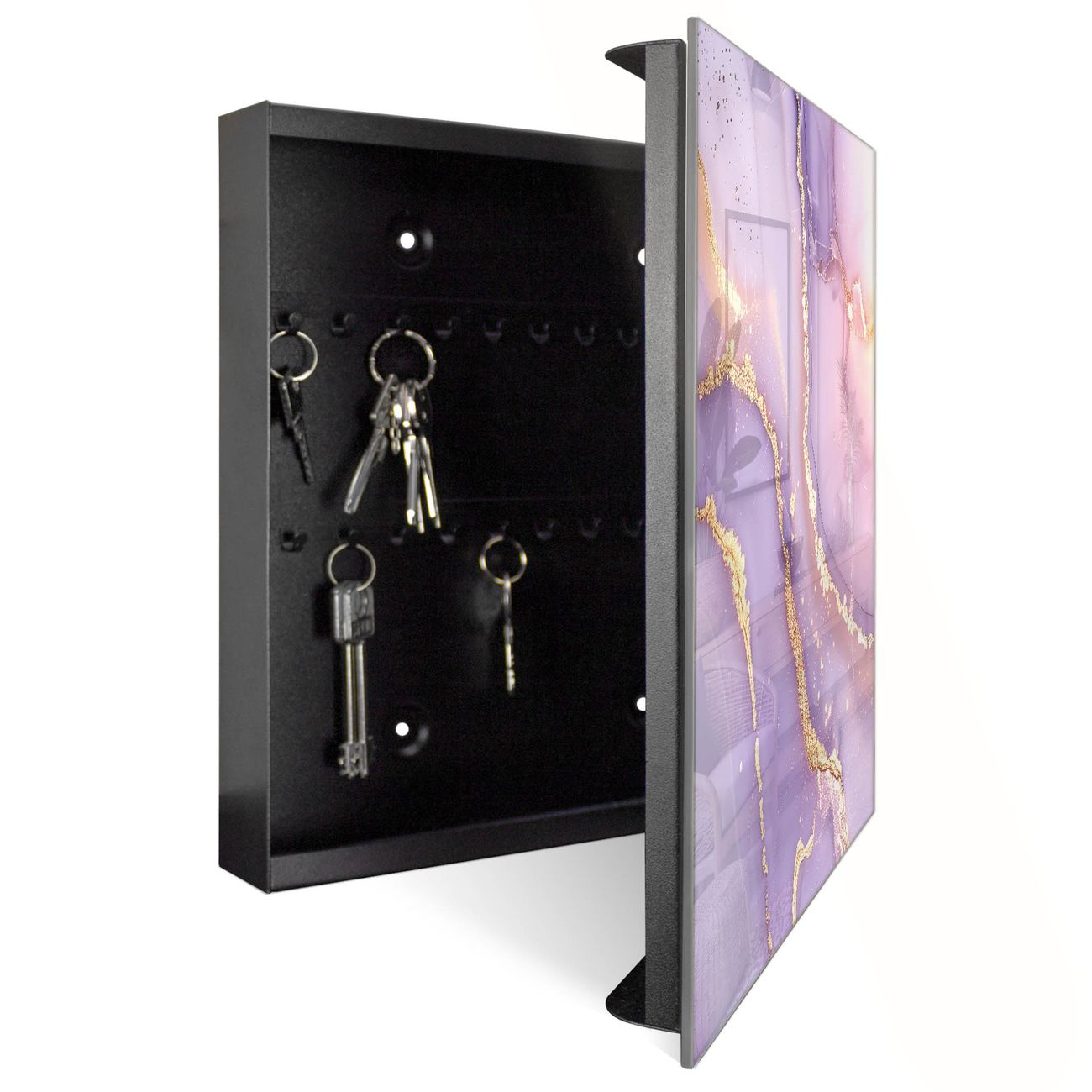 Schlüsselkasten Glas Motiv Lila Marmor mit Gold 3