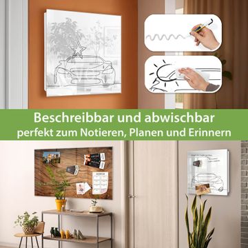 Bringe Ordnung und Eleganz in deinen Eingangsbereich mit dem banjado Schlüsselkasten Motiv Motiv Lineart Auto. Die moderne Schlüsselbox kombiniert funktionales Design mit hochwertiger Verarbeitung und wird so zu einem echten Hingucker in Flur, Büro oder Ferienwohnung. ✅ Stilvolle Schlüsselaufbewahrung mit Glasfront im Motiv Motiv Lineart Auto Der Design-Schlüsselkasten Motiv Motiv Lineart Auto bietet Platz für bis zu 50 Schlüssel, die auf 5 stabilen Reihen mit je 10 Haken übersichtlich verstaut werden. Mit seinen kompakten Maßen von 30 x 30 x 5 cm passt die Schlüsselbox perfekt auch in kleinere Räume. Der weiß lackierte Stahlkorpus mit rechts angeschlagenem Türscharnier harmoniert mit der Glasfront und fügt sich nahtlos in jedes Wohnambiente ein. Ob als Schlüsselorganizer für Zuhause oder als praktische Lösung für Büros, Praxen und Gewerbe, der banjado Schlüsselkasten sorgt für Ordnung und Übersicht. Dank der magnetischen, mit Kreidestiften beschreibbaren Glasfront kannst du Notizen anheften oder Termine direkt auf der Oberfläche festhalten. Die Schlüsselbox Motiv Motiv Lineart Auto zur Wandmontage wird inklusive Befestigungsmaterial geliefert und ist schnell angebracht. So hast du deine Schlüssel jederzeit griffbereit und zugleich stilvoll verstaut. Mit diesem banjado Schlüsselkasten Motiv Motiv Lineart Auto kombinierst du praktische Aufbewahrung mit stilvollem Wohndesign. Ob privat oder geschäftlich, die Schlüsselbox sorgt für mehr Ordnung, Übersicht und ein wohnliches Ambiente.Vorteile im Überblick