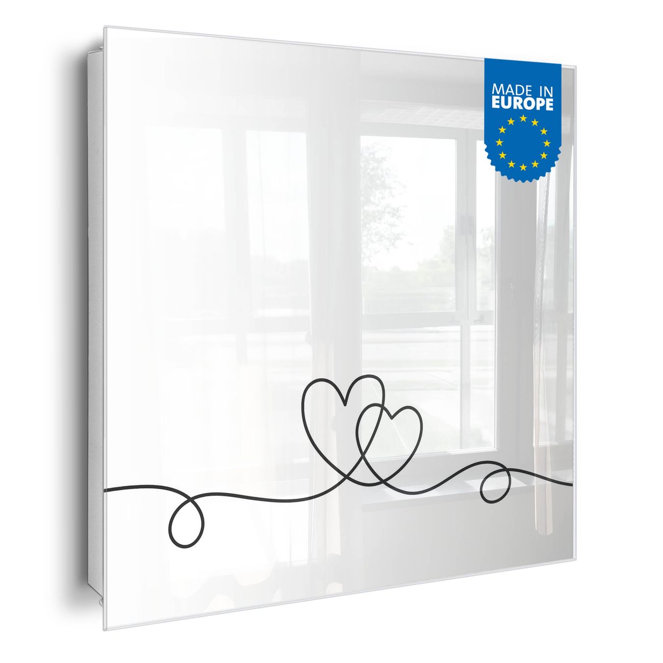 Bringe Ordnung und Eleganz in deinen Eingangsbereich mit dem banjado Schlüsselkasten Motiv Motiv Lineart Herz. Die moderne Schlüsselbox kombiniert funktionales Design mit hochwertiger Verarbeitung und wird so zu einem echten Hingucker in Flur, Büro oder Ferienwohnung. ✅ Stilvolle Schlüsselaufbewahrung mit Glasfront im Motiv Motiv Lineart Herz Der Design-Schlüsselkasten Motiv Motiv Lineart Herz bietet Platz für bis zu 50 Schlüssel, die auf 5 stabilen Reihen mit je 10 Haken übersichtlich verstaut werden. Mit seinen kompakten Maßen von 30 x 30 x 5 cm passt die Schlüsselbox perfekt auch in kleinere Räume. Der weiß lackierte Stahlkorpus mit rechts angeschlagenem Türscharnier harmoniert mit der Glasfront und fügt sich nahtlos in jedes Wohnambiente ein. Ob als Schlüsselorganizer für Zuhause oder als praktische Lösung für Büros, Praxen und Gewerbe, der banjado Schlüsselkasten sorgt für Ordnung und Übersicht. Dank der magnetischen, mit Kreidestiften beschreibbaren Glasfront kannst du Notizen anheften oder Termine direkt auf der Oberfläche festhalten. Die Schlüsselbox Motiv Motiv Lineart Herz zur Wandmontage wird inklusive Befestigungsmaterial geliefert und ist schnell angebracht. So hast du deine Schlüssel jederzeit griffbereit und zugleich stilvoll verstaut. Mit diesem banjado Schlüsselkasten Motiv Motiv Lineart Herz kombinierst du praktische Aufbewahrung mit stilvollem Wohndesign. Ob privat oder geschäftlich, die Schlüsselbox sorgt für mehr Ordnung, Übersicht und ein wohnliches Ambiente.Vorteile im Überblick