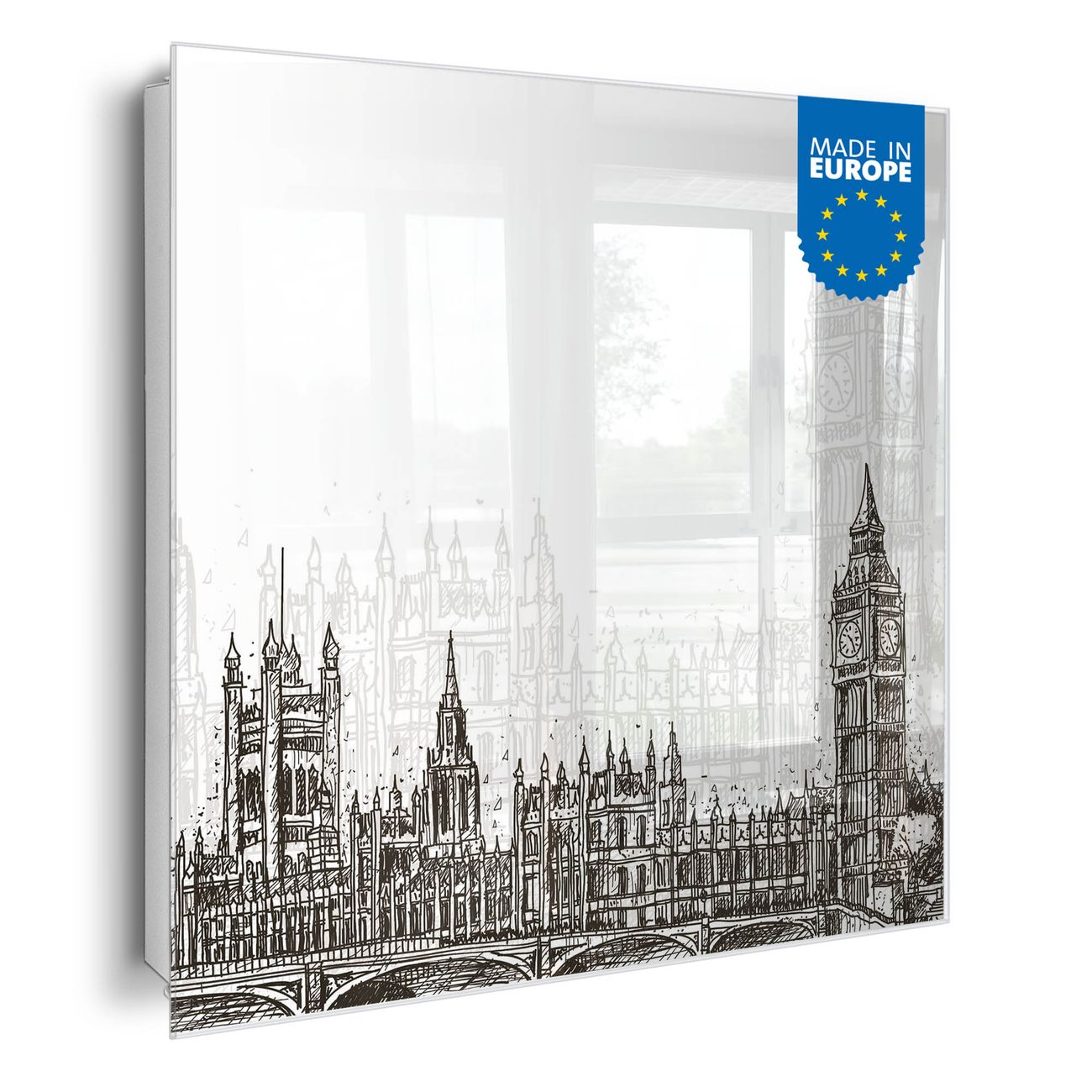 Schlüsselkasten Glas Motiv London Skyline Skizze