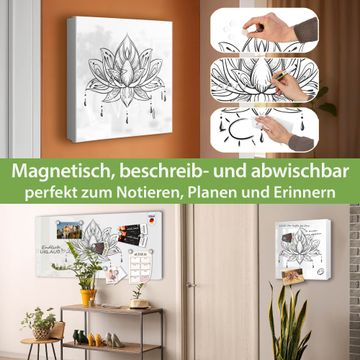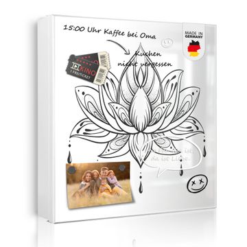 Bringe Ordnung und Eleganz in deinen Eingangsbereich mit dem banjado Schlüsselkasten Motiv Motiv Lotusblüte 6. Die moderne Schlüsselbox kombiniert funktionales Design mit hochwertiger Verarbeitung und wird so zu einem echten Hingucker in Flur, Büro oder Ferienwohnung. ✅ Stilvolle Schlüsselaufbewahrung mit Motiv Motiv Lotusblüte 6 Der Design-Schlüsselkasten Motiv Motiv Lotusblüte 6 bietet Platz für bis zu 32 Schlüssel, die auf 4 stabilen Reihen mit je 8 Haken übersichtlich verstaut werden. Mit seinen kompakten Maßen von 30 x 30 x 5 cm passt die Schlüsselbox perfekt auch in kleinere Räume. Der weiß lackierte Stahlkorpus mit rechts angeschlagenem Türscharnier harmoniert mit gedruckten Folie auf der Front und fügt sich nahtlos in jedes Wohnambiente ein. Ob als Schlüsselorganizer für Zuhause oder als praktische Lösung für Büros, Praxen und Gewerbe, der banjado Schlüsselkasten sorgt für Ordnung und Übersicht. Dank der magnetischen, mit Kreidestiften beschreibbaren Folie auf der Front kannst du Notizen anheften oder Termine direkt auf der Oberfläche festhalten. Die Schlüsselbox Motiv Motiv Lotusblüte 6 zur Wandmontage wird inklusive Befestigungsmaterial geliefert und ist schnell angebracht. So hast du deine Schlüssel jederzeit griffbereit und zugleich stilvoll verstaut. Mit diesem banjado Schlüsselkasten Motiv Motiv Lotusblüte 6 kombinierst du praktische Aufbewahrung mit stilvollem Wohndesign. Ob privat oder geschäftlich, die Schlüsselbox sorgt für mehr Ordnung, Übersicht und ein wohnliches Ambiente.Vorteile im Überblick