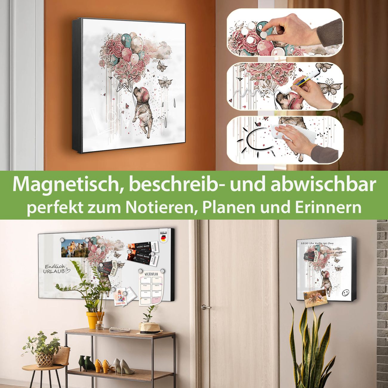 ✅ Magnetisch und mit Kreidestift beschreibbar, rechts angeschlagene TürOrdnung und Design in einem