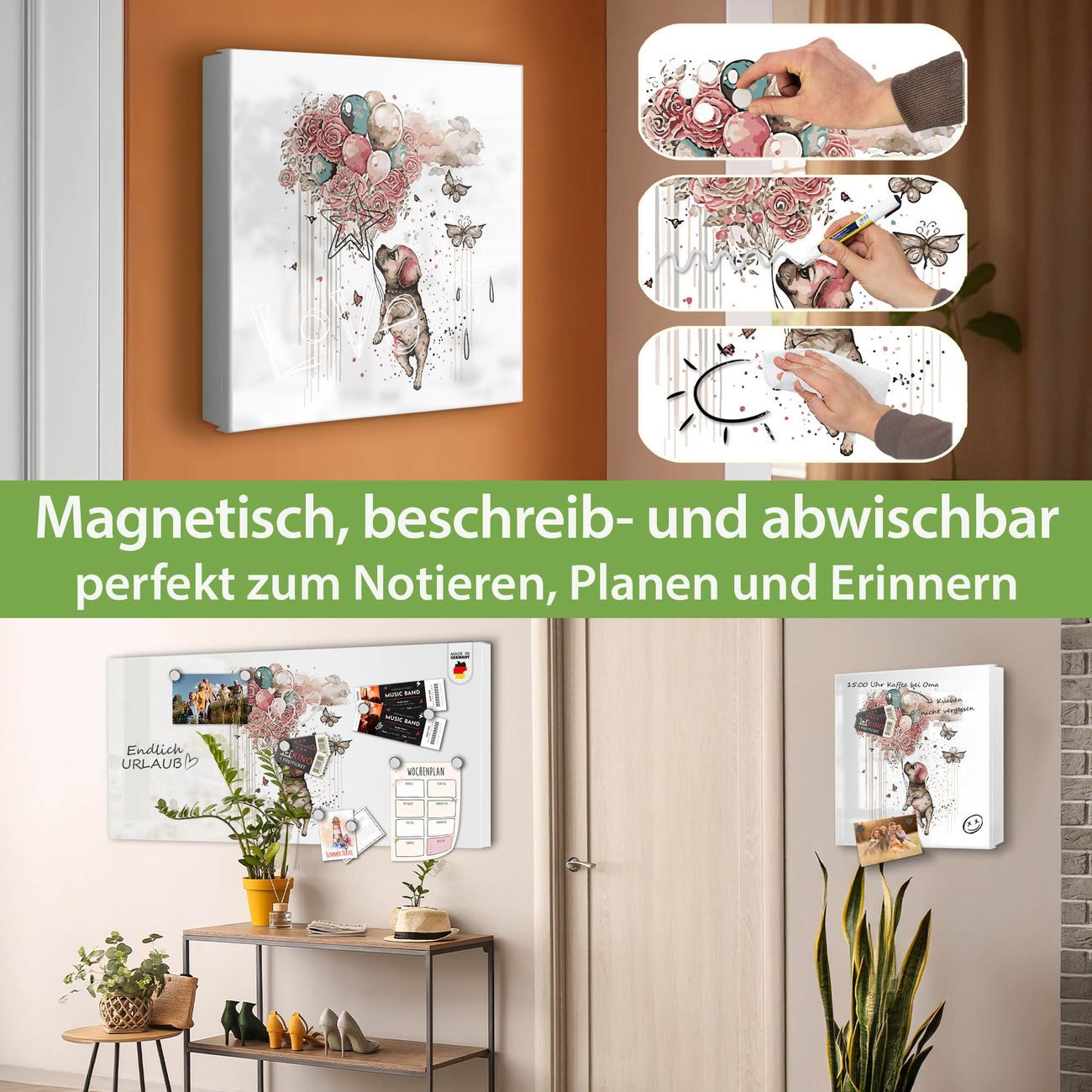 ✅ Magnetisch und mit Kreidestift beschreibbar, links angeschlagene TürOrdnung und Design in einem