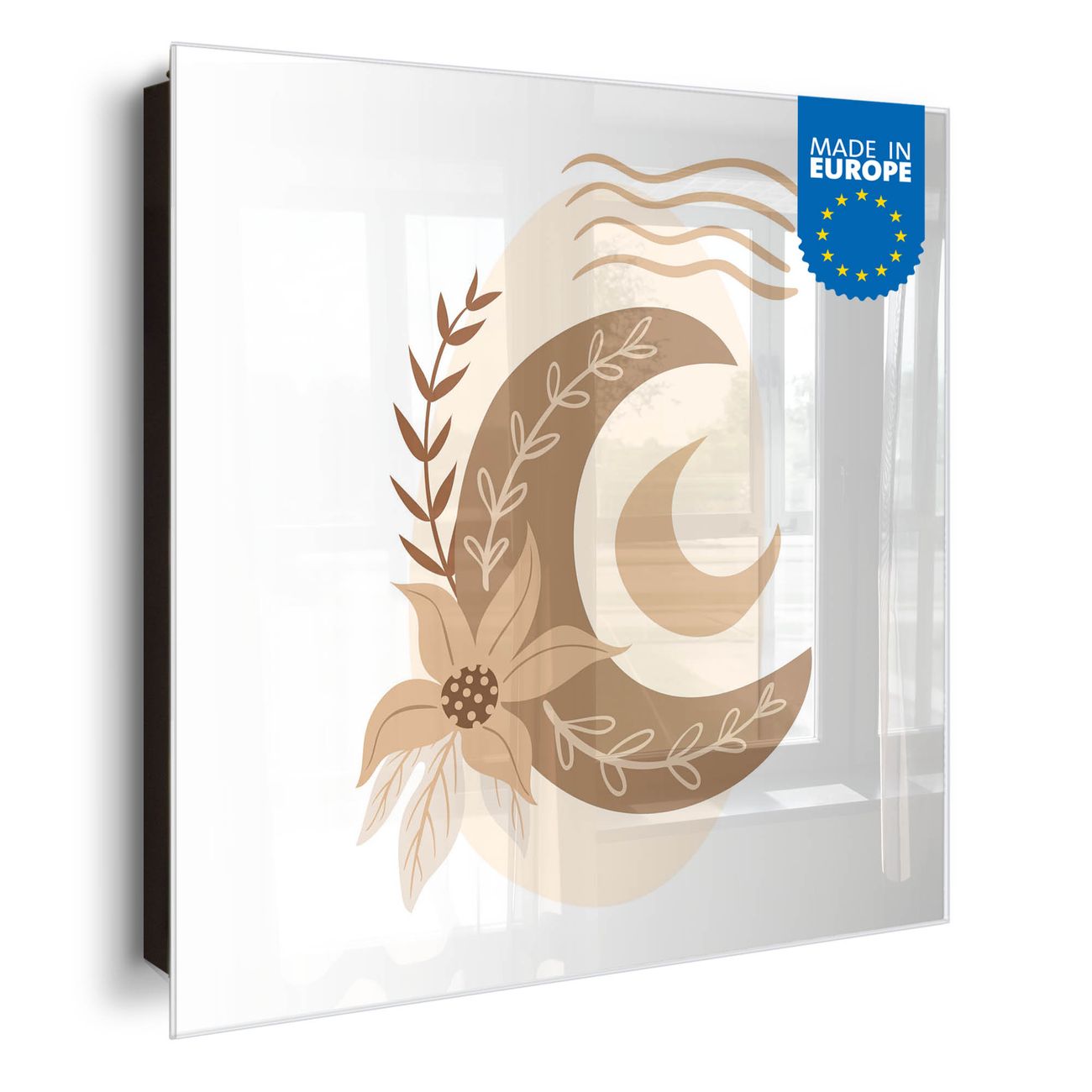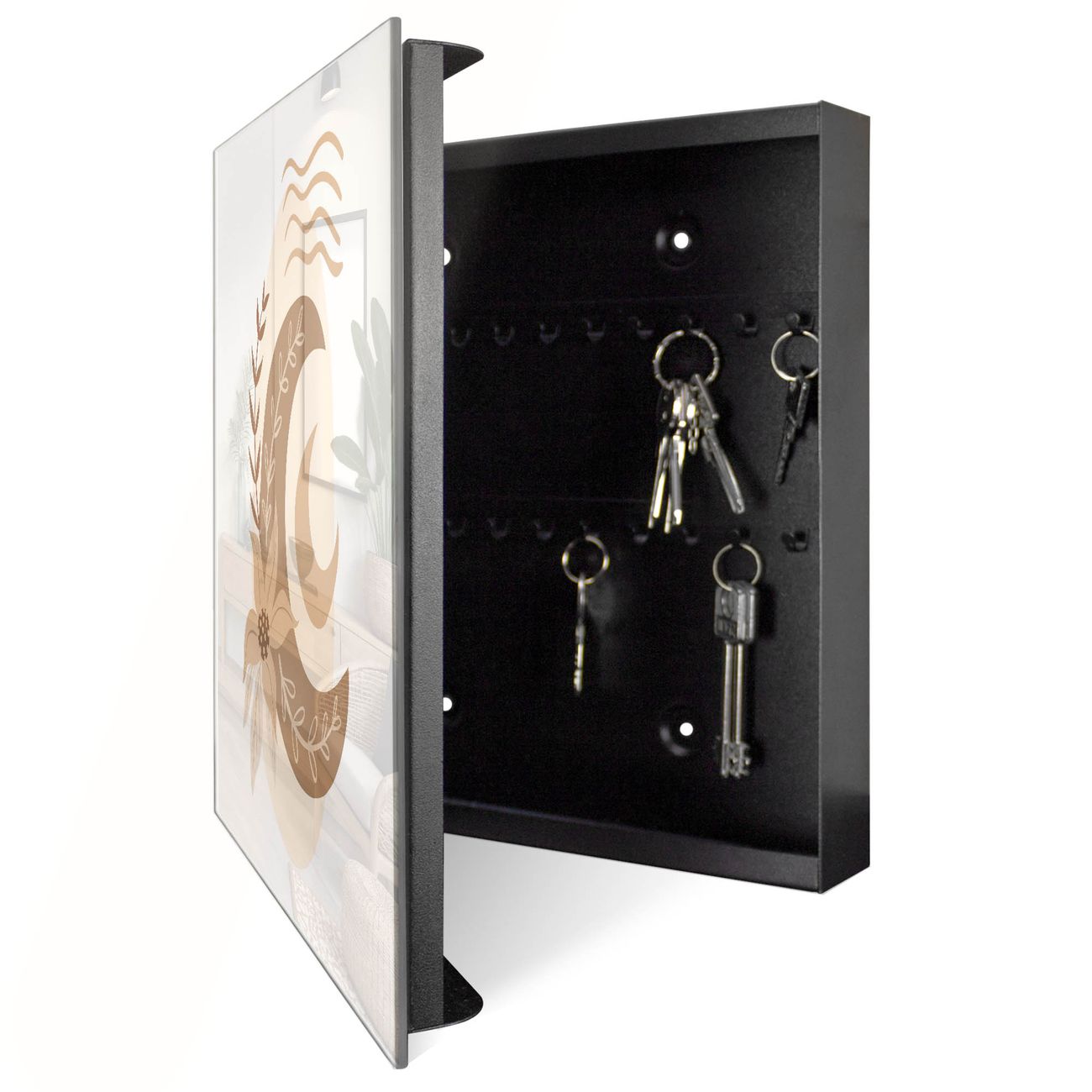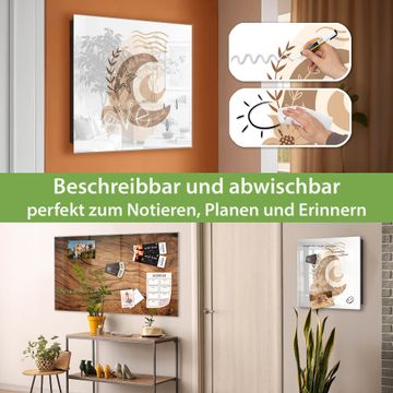 Bringe Ordnung und Eleganz in deinen Eingangsbereich mit dem banjado Schlüsselkasten Motiv Motiv Mondblume. Die moderne Schlüsselbox kombiniert funktionales Design mit hochwertiger Verarbeitung und wird so zu einem echten Hingucker in Flur, Büro oder Ferienwohnung. ✅ Stilvolle Schlüsselaufbewahrung mit Glasfront im Motiv Motiv Mondblume Der Design-Schlüsselkasten Motiv Motiv Mondblume bietet Platz für bis zu 50 Schlüssel, die auf 5 stabilen Reihen mit je 10 Haken übersichtlich verstaut werden. Mit seinen kompakten Maßen von 30 x 30 x 5 cm passt die Schlüsselbox perfekt auch in kleinere Räume. Der schwarz lackierte Stahlkorpus mit rechts angeschlagenem Türscharnier harmoniert mit der Glasfront und fügt sich nahtlos in jedes Wohnambiente ein. Ob als Schlüsselorganizer für Zuhause oder als praktische Lösung für Büros, Praxen und Gewerbe, der banjado Schlüsselkasten sorgt für Ordnung und Übersicht. Dank der magnetischen, mit Kreidestiften beschreibbaren Glasfront kannst du Notizen anheften oder Termine direkt auf der Oberfläche festhalten. Die Schlüsselbox Motiv Motiv Mondblume zur Wandmontage wird inklusive Befestigungsmaterial geliefert und ist schnell angebracht. So hast du deine Schlüssel jederzeit griffbereit und zugleich stilvoll verstaut. Mit diesem banjado Schlüsselkasten Motiv Motiv Mondblume kombinierst du praktische Aufbewahrung mit stilvollem Wohndesign. Ob privat oder geschäftlich, die Schlüsselbox sorgt für mehr Ordnung, Übersicht und ein wohnliches Ambiente.Vorteile im Überblick