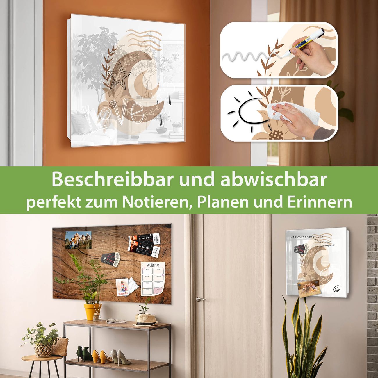 ✅ Magnetisch und mit Kreidestift beschreibbar, gehärtetes Glas, rechts angeschlagene TürOrdnung und Design in einem