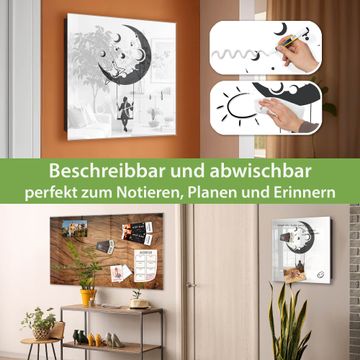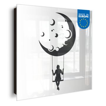 Bringe Ordnung und Eleganz in deinen Eingangsbereich mit dem banjado Schlüsselkasten Motiv Motiv Mondschaukel. Die moderne Schlüsselbox kombiniert funktionales Design mit hochwertiger Verarbeitung und wird so zu einem echten Hingucker in Flur, Büro oder Ferienwohnung. ✅ Stilvolle Schlüsselaufbewahrung mit Glasfront im Motiv Motiv Mondschaukel Der Design-Schlüsselkasten Motiv Motiv Mondschaukel bietet Platz für bis zu 50 Schlüssel, die auf 5 stabilen Reihen mit je 10 Haken übersichtlich verstaut werden. Mit seinen kompakten Maßen von 30 x 30 x 5 cm passt die Schlüsselbox perfekt auch in kleinere Räume. Der schwarz lackierte Stahlkorpus mit rechts angeschlagenem Türscharnier harmoniert mit der Glasfront und fügt sich nahtlos in jedes Wohnambiente ein. Ob als Schlüsselorganizer für Zuhause oder als praktische Lösung für Büros, Praxen und Gewerbe, der banjado Schlüsselkasten sorgt für Ordnung und Übersicht. Dank der magnetischen, mit Kreidestiften beschreibbaren Glasfront kannst du Notizen anheften oder Termine direkt auf der Oberfläche festhalten. Die Schlüsselbox Motiv Motiv Mondschaukel zur Wandmontage wird inklusive Befestigungsmaterial geliefert und ist schnell angebracht. So hast du deine Schlüssel jederzeit griffbereit und zugleich stilvoll verstaut. Mit diesem banjado Schlüsselkasten Motiv Motiv Mondschaukel kombinierst du praktische Aufbewahrung mit stilvollem Wohndesign. Ob privat oder geschäftlich, die Schlüsselbox sorgt für mehr Ordnung, Übersicht und ein wohnliches Ambiente.Vorteile im Überblick