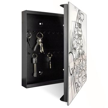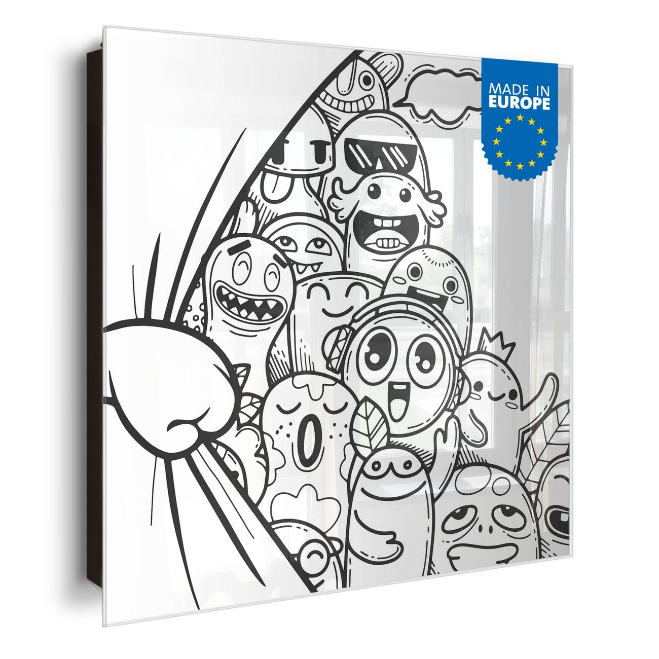Bringe Ordnung und Eleganz in deinen Eingangsbereich mit dem banjado Schlüsselkasten Motiv Motiv Monsterparty. Die moderne Schlüsselbox kombiniert funktionales Design mit hochwertiger Verarbeitung und wird so zu einem echten Hingucker in Flur, Büro oder Ferienwohnung. ✅ Stilvolle Schlüsselaufbewahrung mit Glasfront im Motiv Motiv Monsterparty Der Design-Schlüsselkasten Motiv Motiv Monsterparty bietet Platz für bis zu 50 Schlüssel, die auf 5 stabilen Reihen mit je 10 Haken übersichtlich verstaut werden. Mit seinen kompakten Maßen von 30 x 30 x 5 cm passt die Schlüsselbox perfekt auch in kleinere Räume. Der schwarz lackierte Stahlkorpus mit rechts angeschlagenem Türscharnier harmoniert mit der Glasfront und fügt sich nahtlos in jedes Wohnambiente ein. Ob als Schlüsselorganizer für Zuhause oder als praktische Lösung für Büros, Praxen und Gewerbe, der banjado Schlüsselkasten sorgt für Ordnung und Übersicht. Dank der magnetischen, mit Kreidestiften beschreibbaren Glasfront kannst du Notizen anheften oder Termine direkt auf der Oberfläche festhalten. Die Schlüsselbox Motiv Motiv Monsterparty zur Wandmontage wird inklusive Befestigungsmaterial geliefert und ist schnell angebracht. So hast du deine Schlüssel jederzeit griffbereit und zugleich stilvoll verstaut. Mit diesem banjado Schlüsselkasten Motiv Motiv Monsterparty kombinierst du praktische Aufbewahrung mit stilvollem Wohndesign. Ob privat oder geschäftlich, die Schlüsselbox sorgt für mehr Ordnung, Übersicht und ein wohnliches Ambiente.Vorteile im Überblick