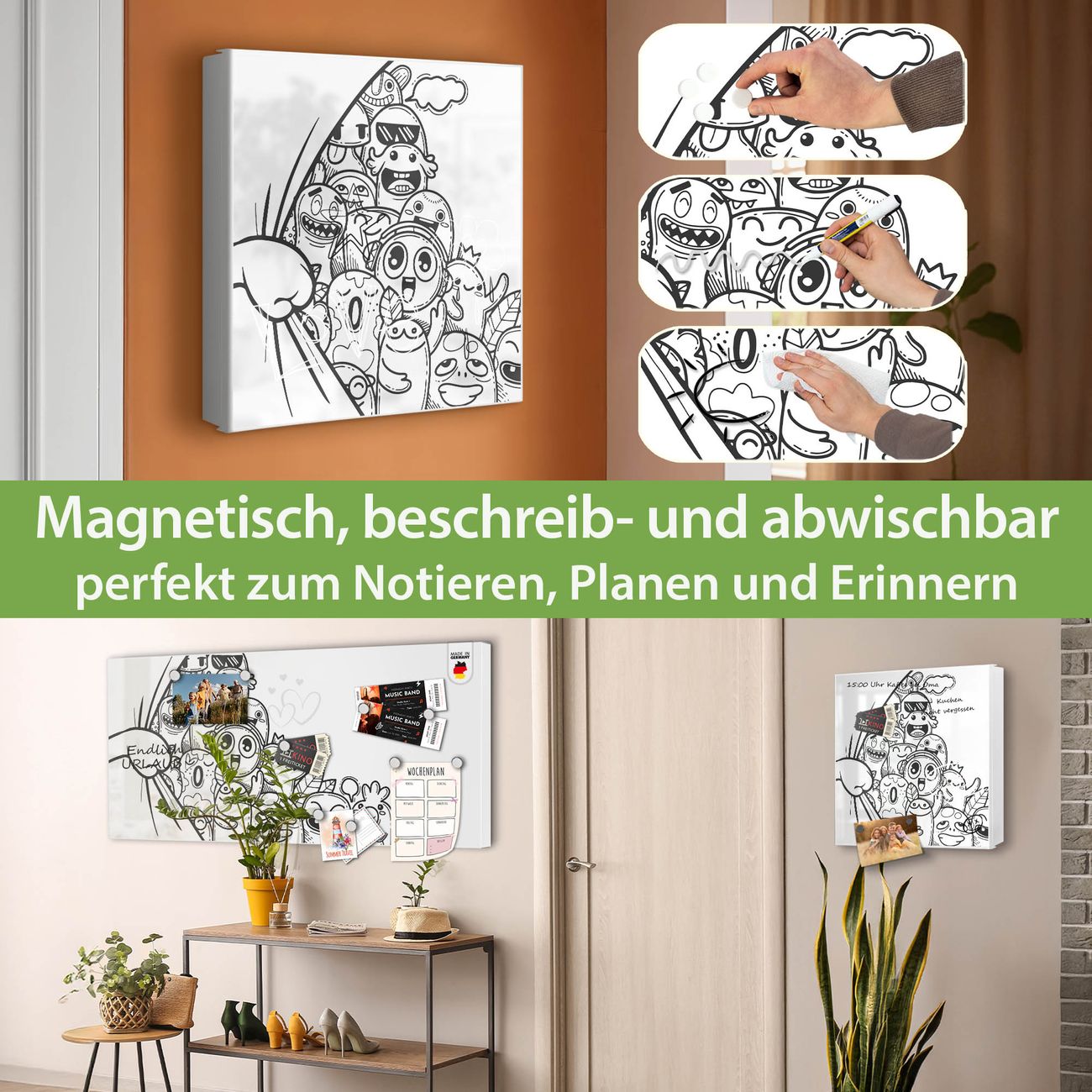 ✅ Magnetisch und mit Kreidestift beschreibbar, links angeschlagene TürOrdnung und Design in einem