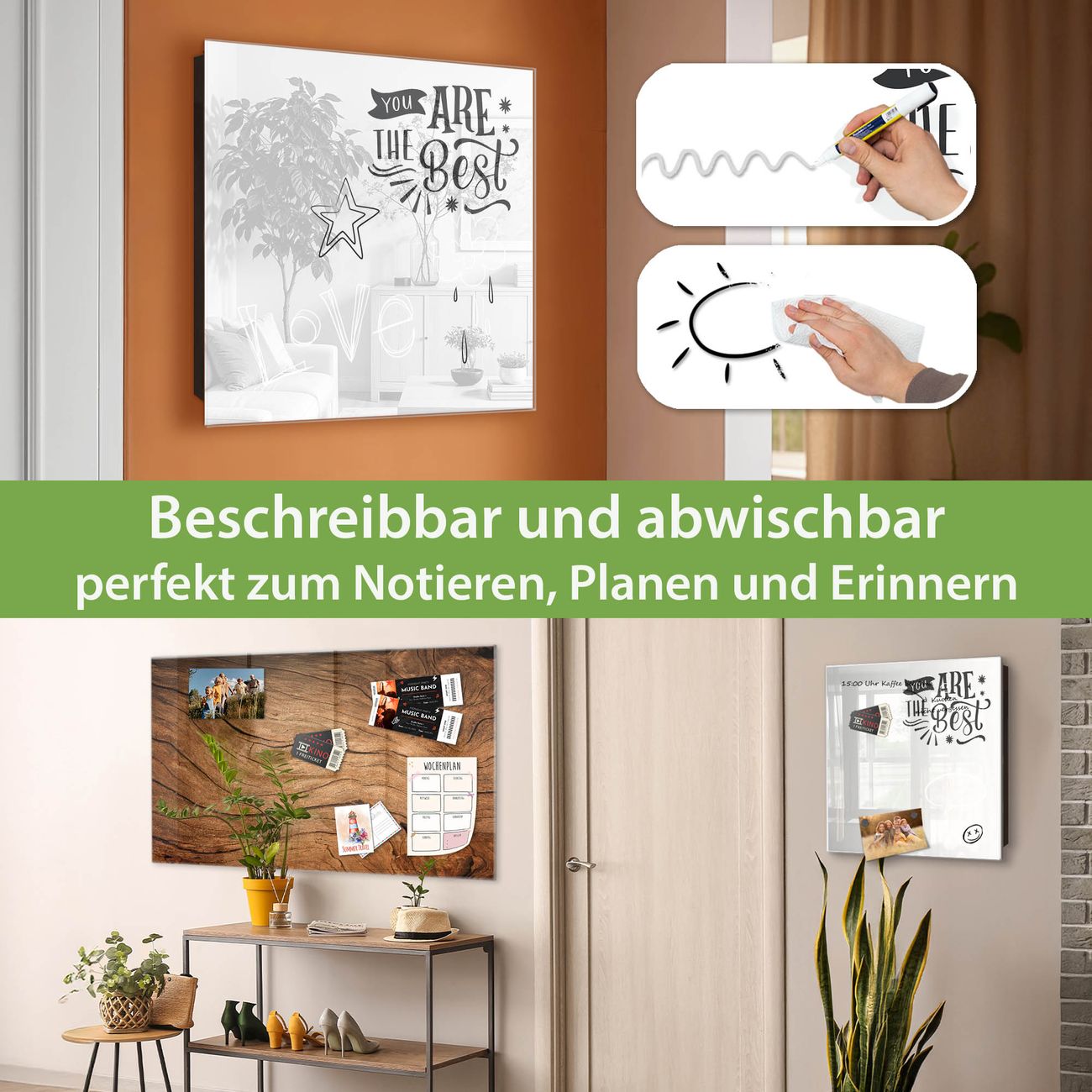 ✅ Magnetisch und mit Kreidestift beschreibbar, gehärtetes Glas, links angeschlagene TürOrdnung und Design in einem