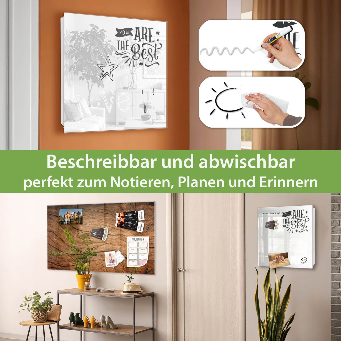 ✅ Magnetisch und mit Kreidestift beschreibbar, gehärtetes Glas, rechts angeschlagene TürOrdnung und Design in einem