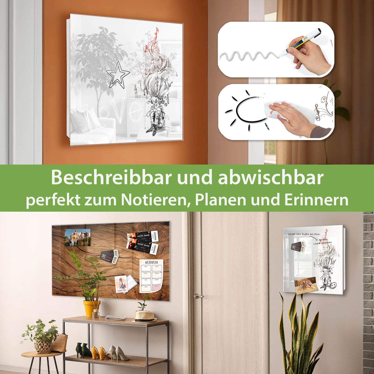 ✅ Magnetisch und mit Kreidestift beschreibbar, gehärtetes Glas, rechts angeschlagene TürOrdnung und Design in einem