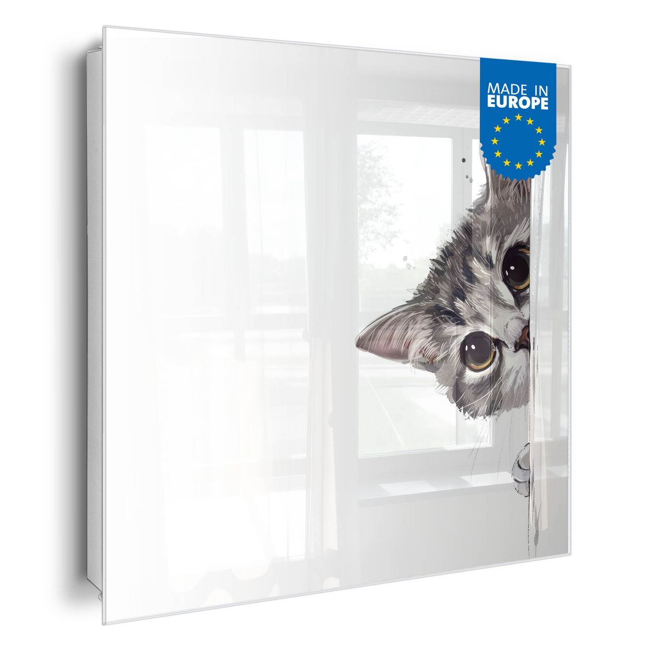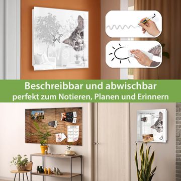 Bringe Ordnung und Eleganz in deinen Eingangsbereich mit dem banjado Schlüsselkasten Motiv Motiv Neugierige Katze. Die moderne Schlüsselbox kombiniert funktionales Design mit hochwertiger Verarbeitung und wird so zu einem echten Hingucker in Flur, Büro oder Ferienwohnung. ✅ Stilvolle Schlüsselaufbewahrung mit Glasfront im Motiv Motiv Neugierige Katze Der Design-Schlüsselkasten Motiv Motiv Neugierige Katze bietet Platz für bis zu 50 Schlüssel, die auf 5 stabilen Reihen mit je 10 Haken übersichtlich verstaut werden. Mit seinen kompakten Maßen von 30 x 30 x 5 cm passt die Schlüsselbox perfekt auch in kleinere Räume. Der weiß lackierte Stahlkorpus mit rechts angeschlagenem Türscharnier harmoniert mit der Glasfront und fügt sich nahtlos in jedes Wohnambiente ein. Ob als Schlüsselorganizer für Zuhause oder als praktische Lösung für Büros, Praxen und Gewerbe, der banjado Schlüsselkasten sorgt für Ordnung und Übersicht. Dank der magnetischen, mit Kreidestiften beschreibbaren Glasfront kannst du Notizen anheften oder Termine direkt auf der Oberfläche festhalten. Die Schlüsselbox Motiv Motiv Neugierige Katze zur Wandmontage wird inklusive Befestigungsmaterial geliefert und ist schnell angebracht. So hast du deine Schlüssel jederzeit griffbereit und zugleich stilvoll verstaut. Mit diesem banjado Schlüsselkasten Motiv Motiv Neugierige Katze kombinierst du praktische Aufbewahrung mit stilvollem Wohndesign. Ob privat oder geschäftlich, die Schlüsselbox sorgt für mehr Ordnung, Übersicht und ein wohnliches Ambiente.Vorteile im Überblick
