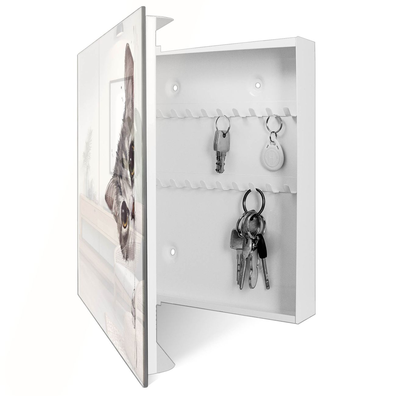 Schlüsselkasten Glas Motiv Neugierige Katze