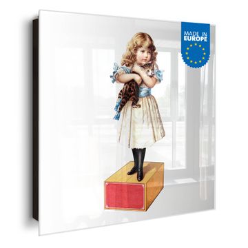 Schlüsselkasten Glas Motiv Mädchen mit Katze Vintage