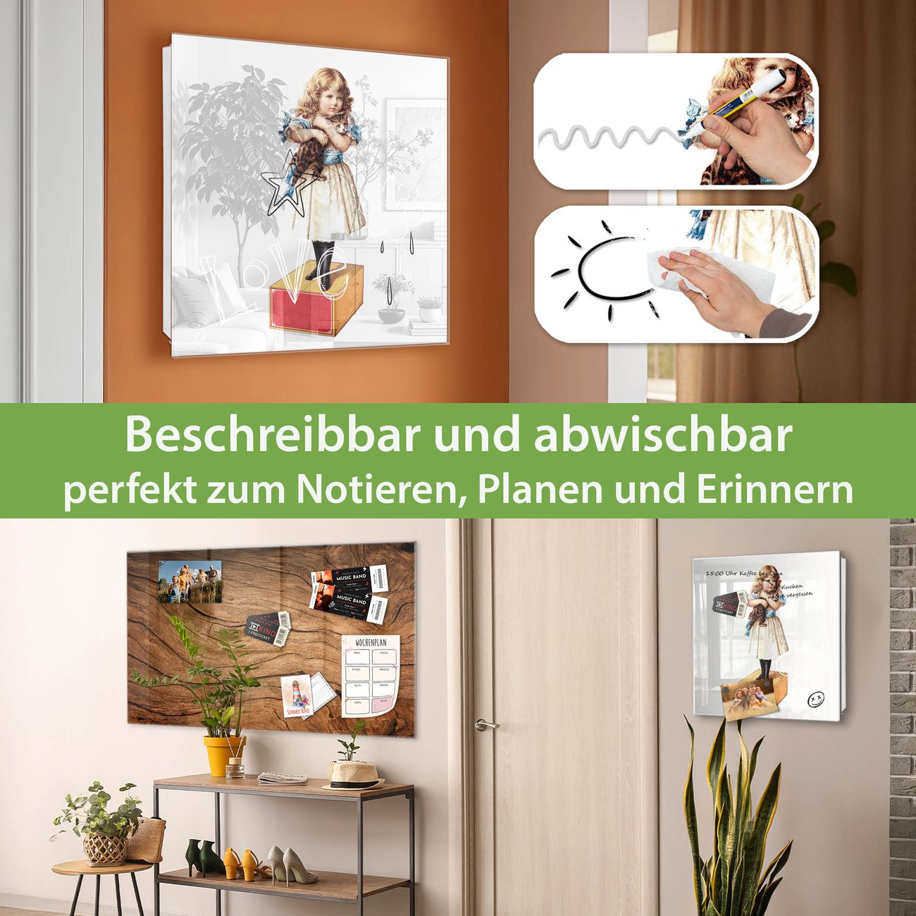 ✅ Magnetisch und mit Kreidestift beschreibbar, gehärtetes Glas, links angeschlagene TürOrdnung und Design in einem