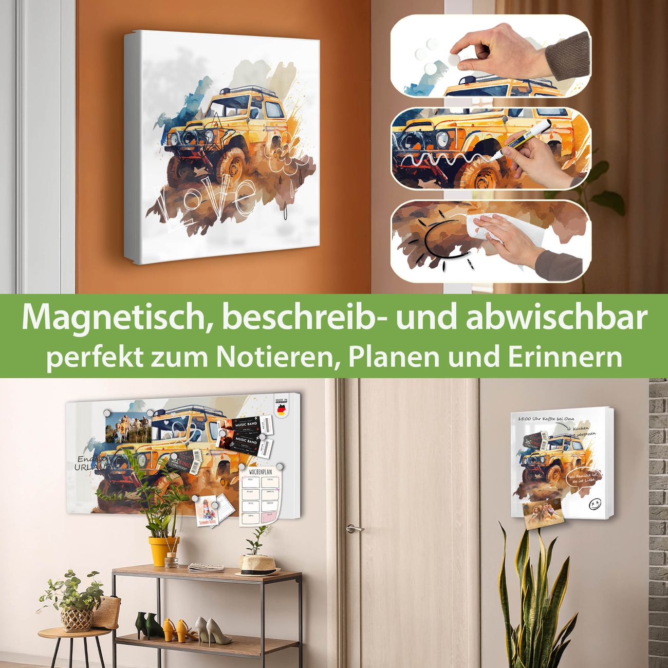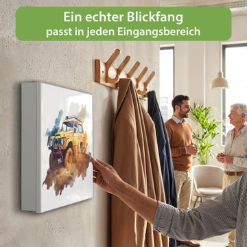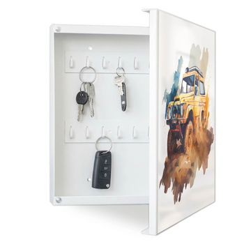 Bringe Ordnung und Eleganz in deinen Eingangsbereich mit dem banjado Schlüsselkasten Motiv Motiv Offroad Abenteuer 2. Die moderne Schlüsselbox kombiniert funktionales Design mit hochwertiger Verarbeitung und wird so zu einem echten Hingucker in Flur, Büro oder Ferienwohnung. ✅ Stilvolle Schlüsselaufbewahrung mit Motiv Motiv Offroad Abenteuer 2 Der Design-Schlüsselkasten Motiv Motiv Offroad Abenteuer 2 bietet Platz für bis zu 32 Schlüssel, die auf 4 stabilen Reihen mit je 8 Haken übersichtlich verstaut werden. Mit seinen kompakten Maßen von 30 x 30 x 5 cm passt die Schlüsselbox perfekt auch in kleinere Räume. Der weiß lackierte Stahlkorpus mit rechts angeschlagenem Türscharnier harmoniert mit gedruckten Folie auf der Front und fügt sich nahtlos in jedes Wohnambiente ein. Ob als Schlüsselorganizer für Zuhause oder als praktische Lösung für Büros, Praxen und Gewerbe, der banjado Schlüsselkasten sorgt für Ordnung und Übersicht. Dank der magnetischen, mit Kreidestiften beschreibbaren Folie auf der Front kannst du Notizen anheften oder Termine direkt auf der Oberfläche festhalten. Die Schlüsselbox Motiv Motiv Offroad Abenteuer 2 zur Wandmontage wird inklusive Befestigungsmaterial geliefert und ist schnell angebracht. So hast du deine Schlüssel jederzeit griffbereit und zugleich stilvoll verstaut. Mit diesem banjado Schlüsselkasten Motiv Motiv Offroad Abenteuer 2 kombinierst du praktische Aufbewahrung mit stilvollem Wohndesign. Ob privat oder geschäftlich, die Schlüsselbox sorgt für mehr Ordnung, Übersicht und ein wohnliches Ambiente.Vorteile im Überblick