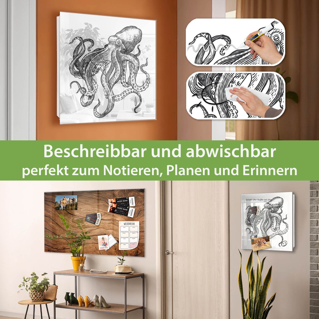 ✅ Magnetisch und mit Kreidestift beschreibbar, gehärtetes Glas, links angeschlagene TürOrdnung und Design in einem