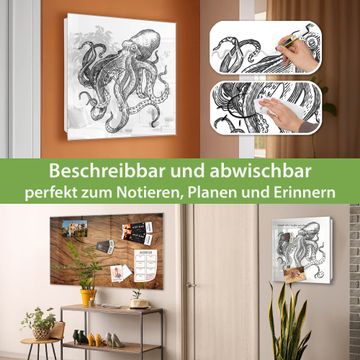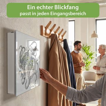 Bringe Ordnung und Eleganz in deinen Eingangsbereich mit dem banjado Schlüsselkasten Motiv Motiv Oktopus 9. Die moderne Schlüsselbox kombiniert funktionales Design mit hochwertiger Verarbeitung und wird so zu einem echten Hingucker in Flur, Büro oder Ferienwohnung. ✅ Stilvolle Schlüsselaufbewahrung mit Glasfront im Motiv Motiv Oktopus 9 Der Design-Schlüsselkasten Motiv Motiv Oktopus 9 bietet Platz für bis zu 50 Schlüssel, die auf 5 stabilen Reihen mit je 10 Haken übersichtlich verstaut werden. Mit seinen kompakten Maßen von 30 x 30 x 5 cm passt die Schlüsselbox perfekt auch in kleinere Räume. Der weiß lackierte Stahlkorpus mit rechts angeschlagenem Türscharnier harmoniert mit der Glasfront und fügt sich nahtlos in jedes Wohnambiente ein. Ob als Schlüsselorganizer für Zuhause oder als praktische Lösung für Büros, Praxen und Gewerbe, der banjado Schlüsselkasten sorgt für Ordnung und Übersicht. Dank der magnetischen, mit Kreidestiften beschreibbaren Glasfront kannst du Notizen anheften oder Termine direkt auf der Oberfläche festhalten. Die Schlüsselbox Motiv Motiv Oktopus 9 zur Wandmontage wird inklusive Befestigungsmaterial geliefert und ist schnell angebracht. So hast du deine Schlüssel jederzeit griffbereit und zugleich stilvoll verstaut. Mit diesem banjado Schlüsselkasten Motiv Motiv Oktopus 9 kombinierst du praktische Aufbewahrung mit stilvollem Wohndesign. Ob privat oder geschäftlich, die Schlüsselbox sorgt für mehr Ordnung, Übersicht und ein wohnliches Ambiente.Vorteile im Überblick