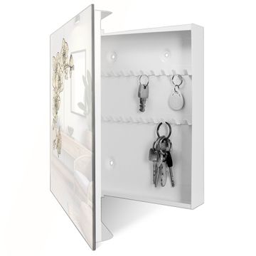 Schlüsselkasten Glas Motiv Orchideenzeichnung