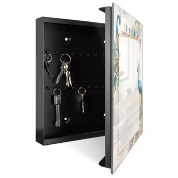 Schlüsselkasten Glas Motiv Pfauenparadies