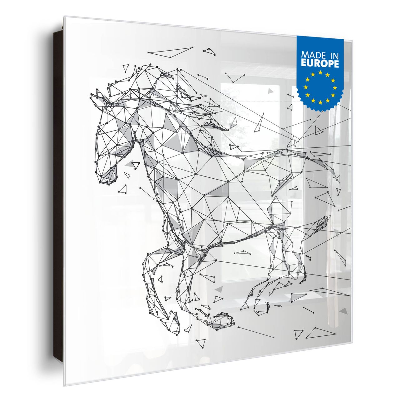 Bringe Ordnung und Eleganz in deinen Eingangsbereich mit dem banjado Schlüsselkasten Motiv Motiv Pferd abstrakt 2. Die moderne Schlüsselbox kombiniert funktionales Design mit hochwertiger Verarbeitung und wird so zu einem echten Hingucker in Flur, Büro oder Ferienwohnung. ✅ Stilvolle Schlüsselaufbewahrung mit Glasfront im Motiv Motiv Pferd abstrakt 2 Der Design-Schlüsselkasten Motiv Motiv Pferd abstrakt 2 bietet Platz für bis zu 50 Schlüssel, die auf 5 stabilen Reihen mit je 10 Haken übersichtlich verstaut werden. Mit seinen kompakten Maßen von 30 x 30 x 5 cm passt die Schlüsselbox perfekt auch in kleinere Räume. Der schwarz lackierte Stahlkorpus mit rechts angeschlagenem Türscharnier harmoniert mit der Glasfront und fügt sich nahtlos in jedes Wohnambiente ein. Ob als Schlüsselorganizer für Zuhause oder als praktische Lösung für Büros, Praxen und Gewerbe, der banjado Schlüsselkasten sorgt für Ordnung und Übersicht. Dank der magnetischen, mit Kreidestiften beschreibbaren Glasfront kannst du Notizen anheften oder Termine direkt auf der Oberfläche festhalten. Die Schlüsselbox Motiv Motiv Pferd abstrakt 2 zur Wandmontage wird inklusive Befestigungsmaterial geliefert und ist schnell angebracht. So hast du deine Schlüssel jederzeit griffbereit und zugleich stilvoll verstaut. Mit diesem banjado Schlüsselkasten Motiv Motiv Pferd abstrakt 2 kombinierst du praktische Aufbewahrung mit stilvollem Wohndesign. Ob privat oder geschäftlich, die Schlüsselbox sorgt für mehr Ordnung, Übersicht und ein wohnliches Ambiente.Vorteile im Überblick