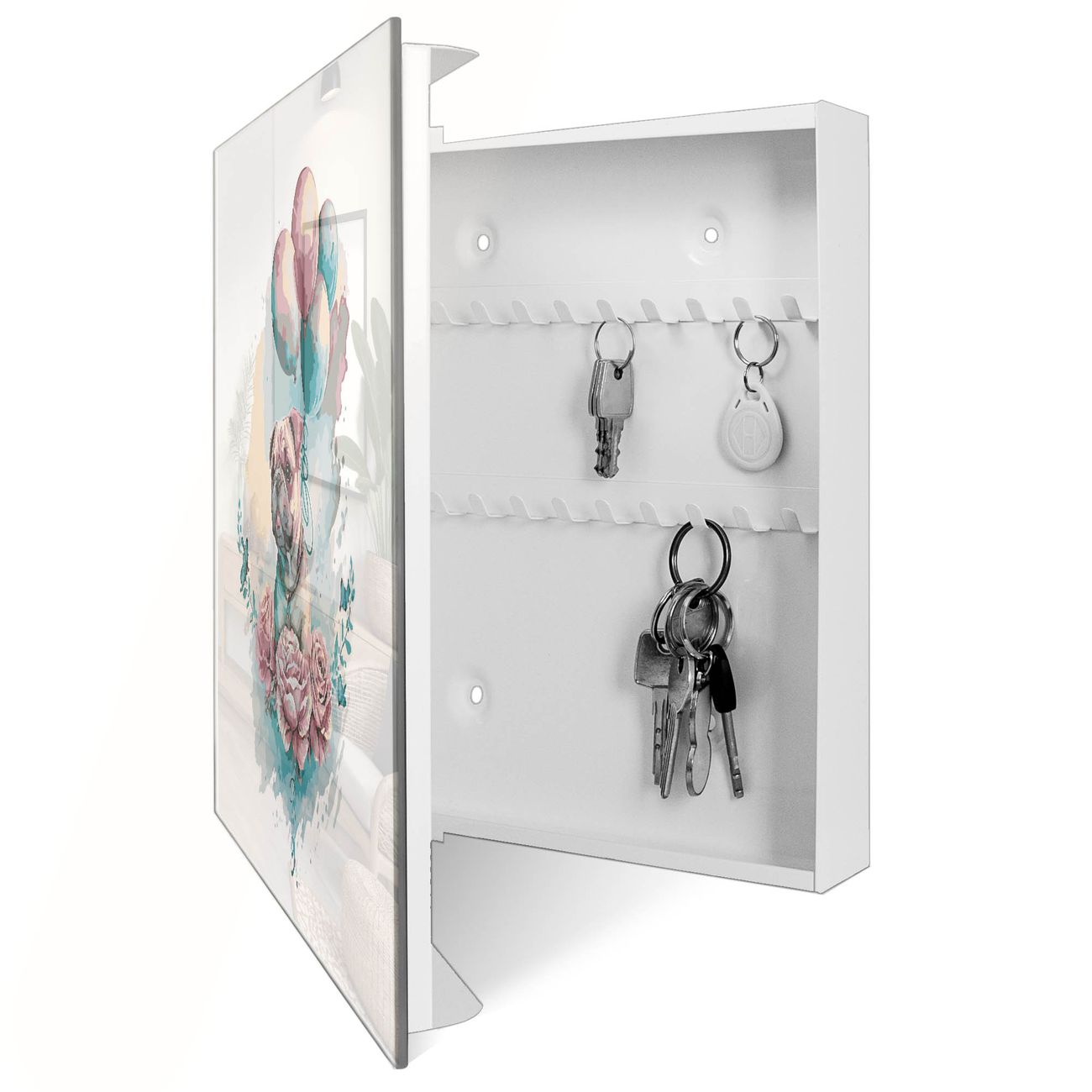 Schlüsselkasten Glas Motiv Pudeliges Blumenglück