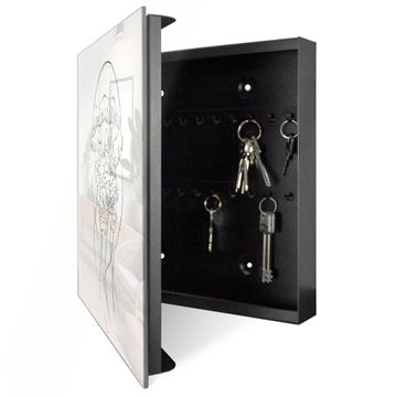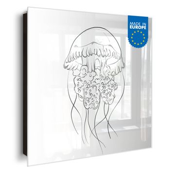 Bringe Ordnung und Eleganz in deinen Eingangsbereich mit dem banjado Schlüsselkasten Motiv Motiv Qualle 5. Die moderne Schlüsselbox kombiniert funktionales Design mit hochwertiger Verarbeitung und wird so zu einem echten Hingucker in Flur, Büro oder Ferienwohnung. ✅ Stilvolle Schlüsselaufbewahrung mit Glasfront im Motiv Motiv Qualle 5 Der Design-Schlüsselkasten Motiv Motiv Qualle 5 bietet Platz für bis zu 50 Schlüssel, die auf 5 stabilen Reihen mit je 10 Haken übersichtlich verstaut werden. Mit seinen kompakten Maßen von 30 x 30 x 5 cm passt die Schlüsselbox perfekt auch in kleinere Räume. Der schwarz lackierte Stahlkorpus mit rechts angeschlagenem Türscharnier harmoniert mit der Glasfront und fügt sich nahtlos in jedes Wohnambiente ein. Ob als Schlüsselorganizer für Zuhause oder als praktische Lösung für Büros, Praxen und Gewerbe, der banjado Schlüsselkasten sorgt für Ordnung und Übersicht. Dank der magnetischen, mit Kreidestiften beschreibbaren Glasfront kannst du Notizen anheften oder Termine direkt auf der Oberfläche festhalten. Die Schlüsselbox Motiv Motiv Qualle 5 zur Wandmontage wird inklusive Befestigungsmaterial geliefert und ist schnell angebracht. So hast du deine Schlüssel jederzeit griffbereit und zugleich stilvoll verstaut. Mit diesem banjado Schlüsselkasten Motiv Motiv Qualle 5 kombinierst du praktische Aufbewahrung mit stilvollem Wohndesign. Ob privat oder geschäftlich, die Schlüsselbox sorgt für mehr Ordnung, Übersicht und ein wohnliches Ambiente.Vorteile im Überblick