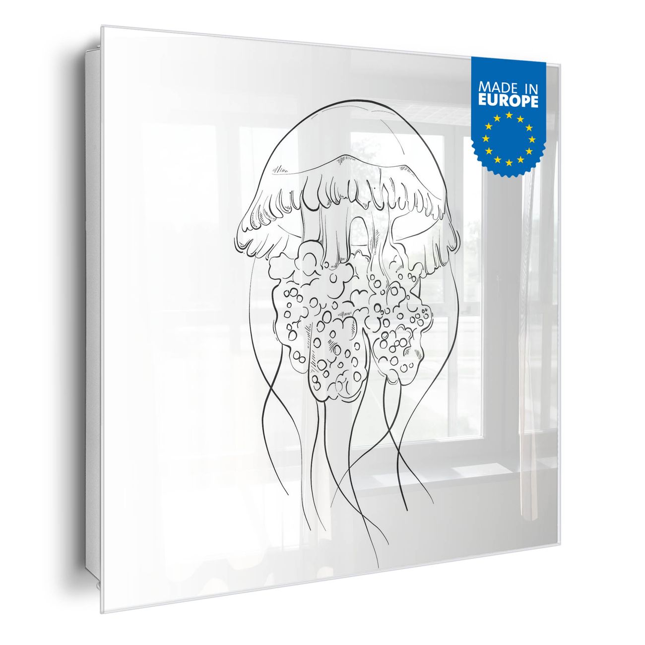 Bringe Ordnung und Eleganz in deinen Eingangsbereich mit dem banjado Schlüsselkasten Motiv Motiv Qualle 5. Die moderne Schlüsselbox kombiniert funktionales Design mit hochwertiger Verarbeitung und wird so zu einem echten Hingucker in Flur, Büro oder Ferienwohnung. ✅ Stilvolle Schlüsselaufbewahrung mit Glasfront im Motiv Motiv Qualle 5 Der Design-Schlüsselkasten Motiv Motiv Qualle 5 bietet Platz für bis zu 50 Schlüssel, die auf 5 stabilen Reihen mit je 10 Haken übersichtlich verstaut werden. Mit seinen kompakten Maßen von 30 x 30 x 5 cm passt die Schlüsselbox perfekt auch in kleinere Räume. Der weiß lackierte Stahlkorpus mit rechts angeschlagenem Türscharnier harmoniert mit der Glasfront und fügt sich nahtlos in jedes Wohnambiente ein. Ob als Schlüsselorganizer für Zuhause oder als praktische Lösung für Büros, Praxen und Gewerbe, der banjado Schlüsselkasten sorgt für Ordnung und Übersicht. Dank der magnetischen, mit Kreidestiften beschreibbaren Glasfront kannst du Notizen anheften oder Termine direkt auf der Oberfläche festhalten. Die Schlüsselbox Motiv Motiv Qualle 5 zur Wandmontage wird inklusive Befestigungsmaterial geliefert und ist schnell angebracht. So hast du deine Schlüssel jederzeit griffbereit und zugleich stilvoll verstaut. Mit diesem banjado Schlüsselkasten Motiv Motiv Qualle 5 kombinierst du praktische Aufbewahrung mit stilvollem Wohndesign. Ob privat oder geschäftlich, die Schlüsselbox sorgt für mehr Ordnung, Übersicht und ein wohnliches Ambiente.Vorteile im Überblick