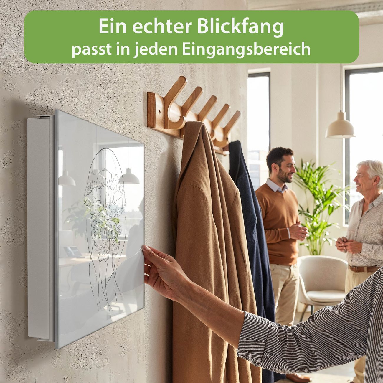 ✅ Magnetisch und mit Kreidestift beschreibbar, gehärtetes Glas, links angeschlagene TürOrdnung und Design in einem