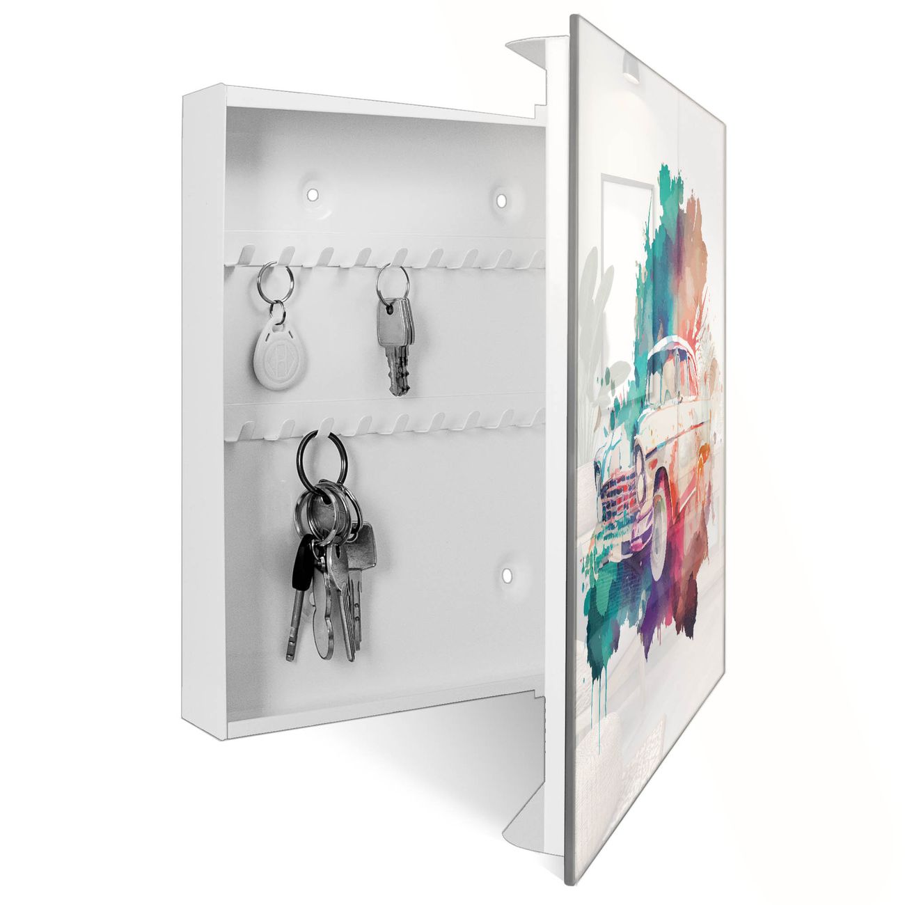 Schlüsselkasten Glas Motiv Retro-Auto in Aquarell