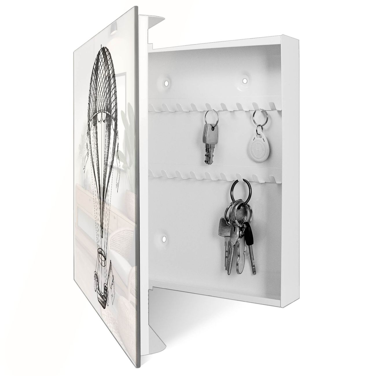 Schlüsselkasten Glas Motiv Retro Heißluftballon