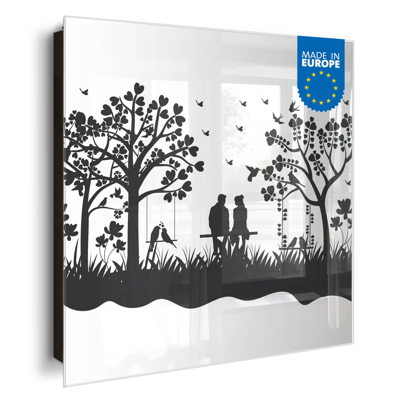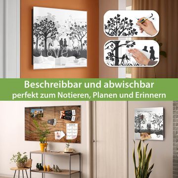 Bringe Ordnung und Eleganz in deinen Eingangsbereich mit dem banjado Schlüsselkasten Motiv Motiv Romantische Silhouette im Park. Die moderne Schlüsselbox kombiniert funktionales Design mit hochwertiger Verarbeitung und wird so zu einem echten Hingucker in Flur, Büro oder Ferienwohnung. ✅ Stilvolle Schlüsselaufbewahrung mit Glasfront im Motiv Motiv Romantische Silhouette im Park Der Design-Schlüsselkasten Motiv Motiv Romantische Silhouette im Park bietet Platz für bis zu 50 Schlüssel, die auf 5 stabilen Reihen mit je 10 Haken übersichtlich verstaut werden. Mit seinen kompakten Maßen von 30 x 30 x 5 cm passt die Schlüsselbox perfekt auch in kleinere Räume. Der schwarz lackierte Stahlkorpus mit rechts angeschlagenem Türscharnier harmoniert mit der Glasfront und fügt sich nahtlos in jedes Wohnambiente ein. Ob als Schlüsselorganizer für Zuhause oder als praktische Lösung für Büros, Praxen und Gewerbe, der banjado Schlüsselkasten sorgt für Ordnung und Übersicht. Dank der magnetischen, mit Kreidestiften beschreibbaren Glasfront kannst du Notizen anheften oder Termine direkt auf der Oberfläche festhalten. Die Schlüsselbox Motiv Motiv Romantische Silhouette im Park zur Wandmontage wird inklusive Befestigungsmaterial geliefert und ist schnell angebracht. So hast du deine Schlüssel jederzeit griffbereit und zugleich stilvoll verstaut. Mit diesem banjado Schlüsselkasten Motiv Motiv Romantische Silhouette im Park kombinierst du praktische Aufbewahrung mit stilvollem Wohndesign. Ob privat oder geschäftlich, die Schlüsselbox sorgt für mehr Ordnung, Übersicht und ein wohnliches Ambiente.Vorteile im Überblick