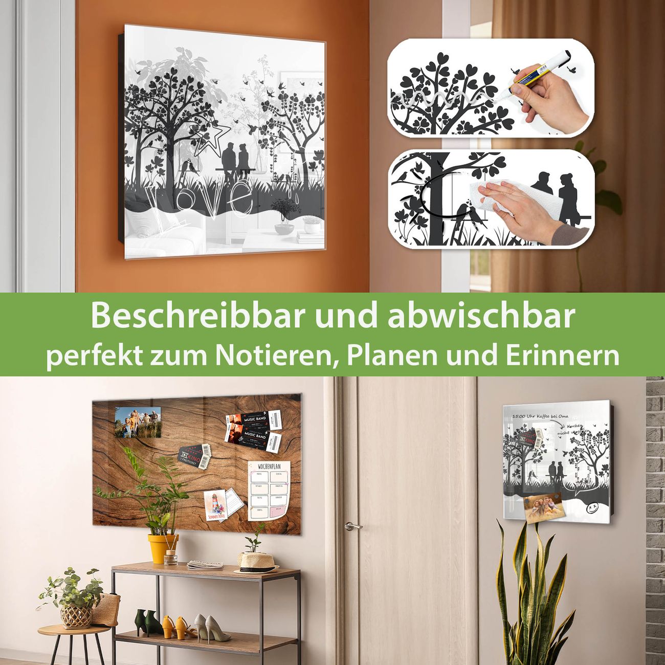 ✅ Magnetisch und mit Kreidestift beschreibbar, gehärtetes Glas, links angeschlagene TürOrdnung und Design in einem