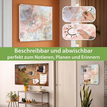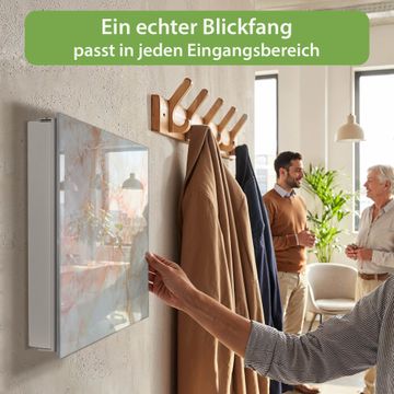 Bringe Ordnung und Eleganz in deinen Eingangsbereich mit dem banjado Schlüsselkasten Motiv Rosa Marmor. Die moderne Schlüsselbox kombiniert funktionales Design mit hochwertiger Verarbeitung und wird so zu einem echten Hingucker in Flur, Büro oder Ferienwohnung. ✅ Stilvolle Schlüsselaufbewahrung mit Glasfront im Motiv Motiv Rosa Marmor Der Design-Schlüsselkasten Motiv Rosa Marmor bietet Platz für bis zu 50 Schlüssel, die auf 5 stabilen Reihen mit je 10 Haken übersichtlich verstaut werden. Mit seinen kompakten Maßen von 30 x 30 x 5 cm passt die Schlüsselbox perfekt auch in kleinere Räume. Der weiß lackierte Stahlkorpus mit rechts angeschlagenem Türscharnier harmoniert mit der Glasfront und fügt sich nahtlos in jedes Wohnambiente ein. Ob als Schlüsselorganizer für Zuhause oder als praktische Lösung für Büros, Praxen und Gewerbe, der banjado Schlüsselkasten sorgt für Ordnung und Übersicht. Dank der magnetischen, mit Kreidestiften beschreibbaren Glasfront kannst du Notizen anheften oder Termine direkt auf der Oberfläche festhalten. Die Schlüsselbox Motiv Rosa Marmor zur Wandmontage wird inklusive Befestigungsmaterial geliefert und ist schnell angebracht. So hast du deine Schlüssel jederzeit griffbereit und zugleich stilvoll verstaut. Mit diesem banjado Schlüsselkasten Motiv Rosa Marmor kombinierst du praktische Aufbewahrung mit stilvollem Wohndesign. Ob privat oder geschäftlich, die Schlüsselbox sorgt für mehr Ordnung, Übersicht und ein wohnliches Ambiente.Vorteile im Überblick