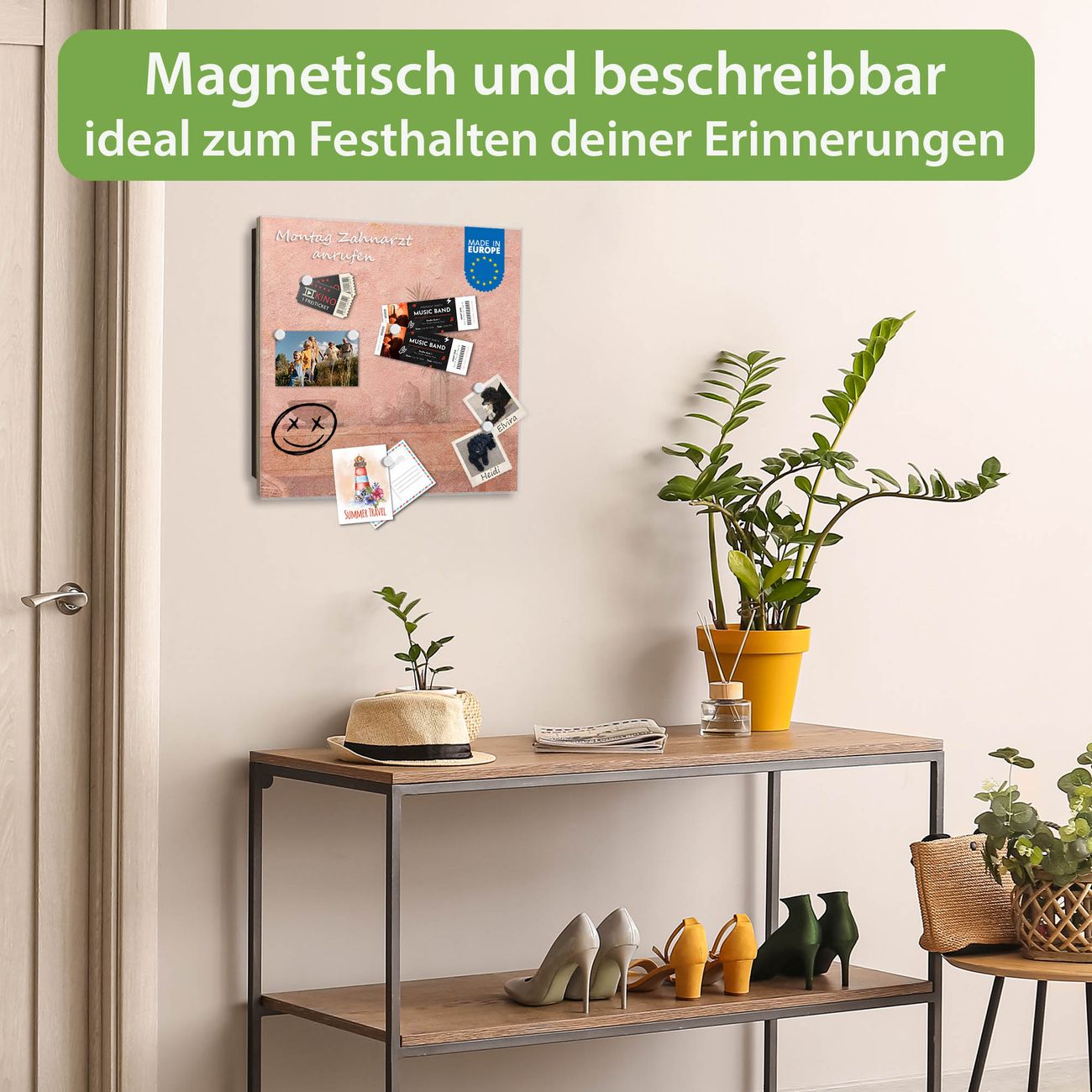 ✅ Magnetisch und mit Kreidestift beschreibbar, gehärtetes Glas, links angeschlagene TürOrdnung und Design in einem