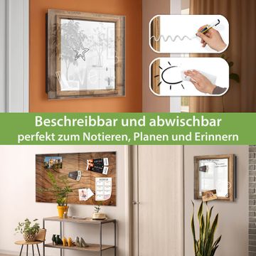 Bringe Ordnung und Eleganz in deinen Eingangsbereich mit dem banjado Schlüsselkasten Motiv Motiv Rustikaler Holzrahmen. Die moderne Schlüsselbox kombiniert funktionales Design mit hochwertiger Verarbeitung und wird so zu einem echten Hingucker in Flur, Büro oder Ferienwohnung. ✅ Stilvolle Schlüsselaufbewahrung mit Glasfront im Motiv Motiv Rustikaler Holzrahmen Der Design-Schlüsselkasten Motiv Motiv Rustikaler Holzrahmen bietet Platz für bis zu 50 Schlüssel, die auf 5 stabilen Reihen mit je 10 Haken übersichtlich verstaut werden. Mit seinen kompakten Maßen von 30 x 30 x 5 cm passt die Schlüsselbox perfekt auch in kleinere Räume. Der schwarz lackierte Stahlkorpus mit rechts angeschlagenem Türscharnier harmoniert mit der Glasfront und fügt sich nahtlos in jedes Wohnambiente ein. Ob als Schlüsselorganizer für Zuhause oder als praktische Lösung für Büros, Praxen und Gewerbe, der banjado Schlüsselkasten sorgt für Ordnung und Übersicht. Dank der magnetischen, mit Kreidestiften beschreibbaren Glasfront kannst du Notizen anheften oder Termine direkt auf der Oberfläche festhalten. Die Schlüsselbox Motiv Motiv Rustikaler Holzrahmen zur Wandmontage wird inklusive Befestigungsmaterial geliefert und ist schnell angebracht. So hast du deine Schlüssel jederzeit griffbereit und zugleich stilvoll verstaut. Mit diesem banjado Schlüsselkasten Motiv Motiv Rustikaler Holzrahmen kombinierst du praktische Aufbewahrung mit stilvollem Wohndesign. Ob privat oder geschäftlich, die Schlüsselbox sorgt für mehr Ordnung, Übersicht und ein wohnliches Ambiente.Vorteile im Überblick