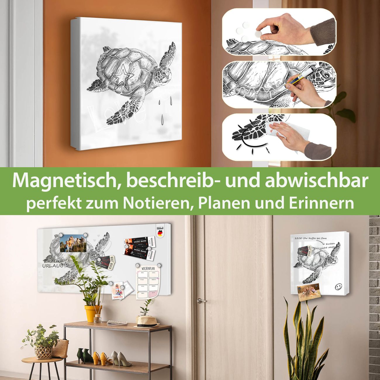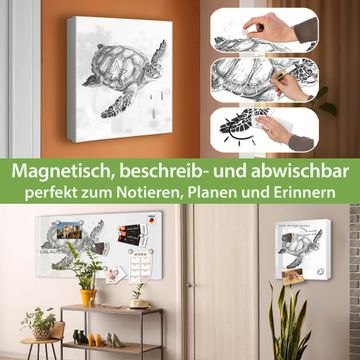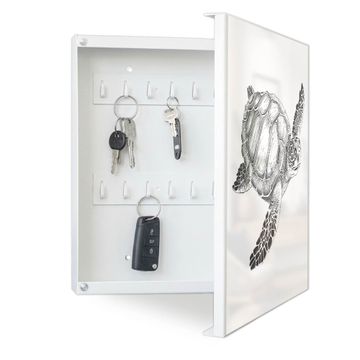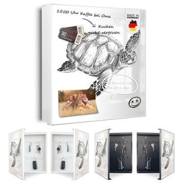 Bringe Ordnung und Eleganz in deinen Eingangsbereich mit dem banjado Schlüsselkasten Motiv Motiv Schildkröte 2. Die moderne Schlüsselbox kombiniert funktionales Design mit hochwertiger Verarbeitung und wird so zu einem echten Hingucker in Flur, Büro oder Ferienwohnung. ✅ Stilvolle Schlüsselaufbewahrung mit Motiv Motiv Schildkröte 2 Der Design-Schlüsselkasten Motiv Motiv Schildkröte 2 bietet Platz für bis zu 32 Schlüssel, die auf 4 stabilen Reihen mit je 8 Haken übersichtlich verstaut werden. Mit seinen kompakten Maßen von 30 x 30 x 5 cm passt die Schlüsselbox perfekt auch in kleinere Räume. Der weiß lackierte Stahlkorpus mit rechts angeschlagenem Türscharnier harmoniert mit gedruckten Folie auf der Front und fügt sich nahtlos in jedes Wohnambiente ein. Ob als Schlüsselorganizer für Zuhause oder als praktische Lösung für Büros, Praxen und Gewerbe, der banjado Schlüsselkasten sorgt für Ordnung und Übersicht. Dank der magnetischen, mit Kreidestiften beschreibbaren Folie auf der Front kannst du Notizen anheften oder Termine direkt auf der Oberfläche festhalten. Die Schlüsselbox Motiv Motiv Schildkröte 2 zur Wandmontage wird inklusive Befestigungsmaterial geliefert und ist schnell angebracht. So hast du deine Schlüssel jederzeit griffbereit und zugleich stilvoll verstaut. Mit diesem banjado Schlüsselkasten Motiv Motiv Schildkröte 2 kombinierst du praktische Aufbewahrung mit stilvollem Wohndesign. Ob privat oder geschäftlich, die Schlüsselbox sorgt für mehr Ordnung, Übersicht und ein wohnliches Ambiente.Vorteile im Überblick