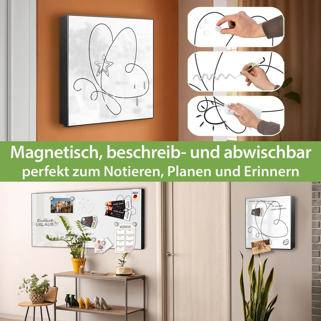 ✅ Magnetisch und mit Kreidestift beschreibbar, links angeschlagene TürOrdnung und Design in einem