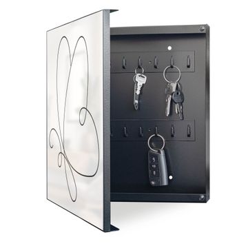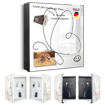 Bringe Ordnung und Eleganz in deinen Eingangsbereich mit dem banjado Schlüsselkasten Motiv Motiv Schmetterling Lineart 2. Die moderne Schlüsselbox kombiniert funktionales Design mit hochwertiger Verarbeitung und wird so zu einem echten Hingucker in Flur, Büro oder Ferienwohnung. ✅ Stilvolle Schlüsselaufbewahrung mit Motiv Motiv Schmetterling Lineart 2 Der Design-Schlüsselkasten Motiv Motiv Schmetterling Lineart 2 bietet Platz für bis zu 32 Schlüssel, die auf 4 stabilen Reihen mit je 8 Haken übersichtlich verstaut werden. Mit seinen kompakten Maßen von 30 x 30 x 5 cm passt die Schlüsselbox perfekt auch in kleinere Räume. Der schwarz lackierte Stahlkorpus mit links angeschlagenem Türscharnier harmoniert mit gedruckten Folie auf der Front und fügt sich nahtlos in jedes Wohnambiente ein. Ob als Schlüsselorganizer für Zuhause oder als praktische Lösung für Büros, Praxen und Gewerbe, der banjado Schlüsselkasten sorgt für Ordnung und Übersicht. Dank der magnetischen, mit Kreidestiften beschreibbaren Folie auf der Front kannst du Notizen anheften oder Termine direkt auf der Oberfläche festhalten. Die Schlüsselbox Motiv Motiv Schmetterling Lineart 2 zur Wandmontage wird inklusive Befestigungsmaterial geliefert und ist schnell angebracht. So hast du deine Schlüssel jederzeit griffbereit und zugleich stilvoll verstaut. Mit diesem banjado Schlüsselkasten Motiv Motiv Schmetterling Lineart 2 kombinierst du praktische Aufbewahrung mit stilvollem Wohndesign. Ob privat oder geschäftlich, die Schlüsselbox sorgt für mehr Ordnung, Übersicht und ein wohnliches Ambiente.Vorteile im Überblick
