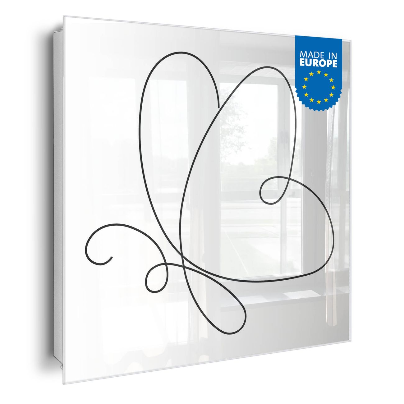Bringe Ordnung und Eleganz in deinen Eingangsbereich mit dem banjado Schlüsselkasten Motiv Motiv Schmetterling Lineart 2. Die moderne Schlüsselbox kombiniert funktionales Design mit hochwertiger Verarbeitung und wird so zu einem echten Hingucker in Flur, Büro oder Ferienwohnung. ✅ Stilvolle Schlüsselaufbewahrung mit Glasfront im Motiv Motiv Schmetterling Lineart 2 Der Design-Schlüsselkasten Motiv Motiv Schmetterling Lineart 2 bietet Platz für bis zu 50 Schlüssel, die auf 5 stabilen Reihen mit je 10 Haken übersichtlich verstaut werden. Mit seinen kompakten Maßen von 30 x 30 x 5 cm passt die Schlüsselbox perfekt auch in kleinere Räume. Der weiß lackierte Stahlkorpus mit rechts angeschlagenem Türscharnier harmoniert mit der Glasfront und fügt sich nahtlos in jedes Wohnambiente ein. Ob als Schlüsselorganizer für Zuhause oder als praktische Lösung für Büros, Praxen und Gewerbe, der banjado Schlüsselkasten sorgt für Ordnung und Übersicht. Dank der magnetischen, mit Kreidestiften beschreibbaren Glasfront kannst du Notizen anheften oder Termine direkt auf der Oberfläche festhalten. Die Schlüsselbox Motiv Motiv Schmetterling Lineart 2 zur Wandmontage wird inklusive Befestigungsmaterial geliefert und ist schnell angebracht. So hast du deine Schlüssel jederzeit griffbereit und zugleich stilvoll verstaut. Mit diesem banjado Schlüsselkasten Motiv Motiv Schmetterling Lineart 2 kombinierst du praktische Aufbewahrung mit stilvollem Wohndesign. Ob privat oder geschäftlich, die Schlüsselbox sorgt für mehr Ordnung, Übersicht und ein wohnliches Ambiente.Vorteile im Überblick