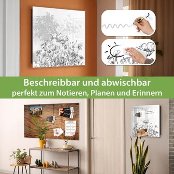 Bringe Ordnung und Eleganz in deinen Eingangsbereich mit dem banjado Schlüsselkasten Motiv Motiv Schwarz-Weiß Blumenzeichnung. Die moderne Schlüsselbox kombiniert funktionales Design mit hochwertiger Verarbeitung und wird so zu einem echten Hingucker in Flur, Büro oder Ferienwohnung. ✅ Stilvolle Schlüsselaufbewahrung mit Glasfront im Motiv Motiv Schwarz-Weiß Blumenzeichnung Der Design-Schlüsselkasten Motiv Motiv Schwarz-Weiß Blumenzeichnung bietet Platz für bis zu 50 Schlüssel, die auf 5 stabilen Reihen mit je 10 Haken übersichtlich verstaut werden. Mit seinen kompakten Maßen von 30 x 30 x 5 cm passt die Schlüsselbox perfekt auch in kleinere Räume. Der schwarz lackierte Stahlkorpus mit rechts angeschlagenem Türscharnier harmoniert mit der Glasfront und fügt sich nahtlos in jedes Wohnambiente ein. Ob als Schlüsselorganizer für Zuhause oder als praktische Lösung für Büros, Praxen und Gewerbe, der banjado Schlüsselkasten sorgt für Ordnung und Übersicht. Dank der magnetischen, mit Kreidestiften beschreibbaren Glasfront kannst du Notizen anheften oder Termine direkt auf der Oberfläche festhalten. Die Schlüsselbox Motiv Motiv Schwarz-Weiß Blumenzeichnung zur Wandmontage wird inklusive Befestigungsmaterial geliefert und ist schnell angebracht. So hast du deine Schlüssel jederzeit griffbereit und zugleich stilvoll verstaut. Mit diesem banjado Schlüsselkasten Motiv Motiv Schwarz-Weiß Blumenzeichnung kombinierst du praktische Aufbewahrung mit stilvollem Wohndesign. Ob privat oder geschäftlich, die Schlüsselbox sorgt für mehr Ordnung, Übersicht und ein wohnliches Ambiente.Vorteile im Überblick