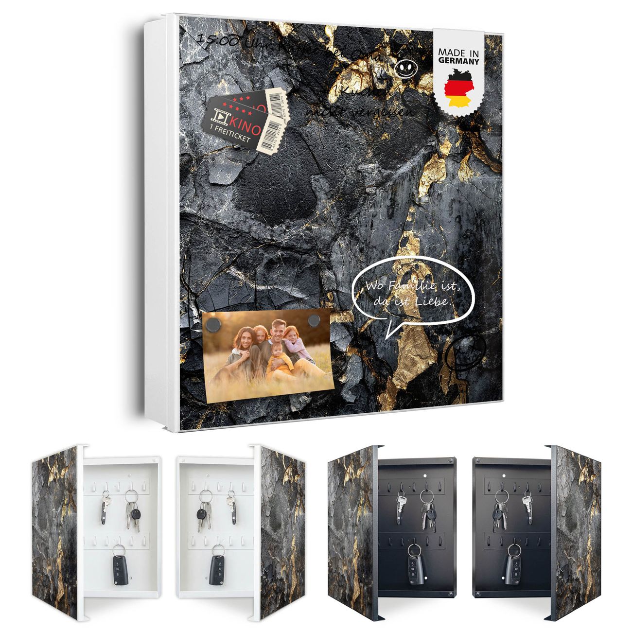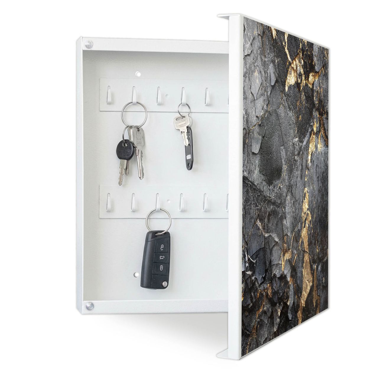 Schlüsselkasten Motiv Schwarzer Marmor mit Gold 1