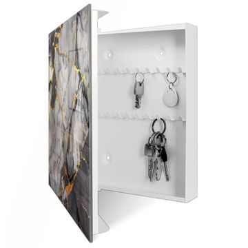 Schlüsselkasten Glas Motiv Schwarzer Marmor mit Gold 2