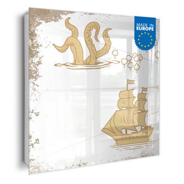 Schlüsselkasten Glas Motiv Seemonster und Segelschiff