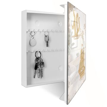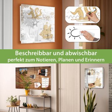 Bringe Ordnung und Eleganz in deinen Eingangsbereich mit dem banjado Schlüsselkasten Motiv Motiv Seemonster und Segelschiff. Die moderne Schlüsselbox kombiniert funktionales Design mit hochwertiger Verarbeitung und wird so zu einem echten Hingucker in Flur, Büro oder Ferienwohnung. ✅ Stilvolle Schlüsselaufbewahrung mit Glasfront im Motiv Motiv Seemonster und Segelschiff Der Design-Schlüsselkasten Motiv Motiv Seemonster und Segelschiff bietet Platz für bis zu 50 Schlüssel, die auf 5 stabilen Reihen mit je 10 Haken übersichtlich verstaut werden. Mit seinen kompakten Maßen von 30 x 30 x 5 cm passt die Schlüsselbox perfekt auch in kleinere Räume. Der weiß lackierte Stahlkorpus mit rechts angeschlagenem Türscharnier harmoniert mit der Glasfront und fügt sich nahtlos in jedes Wohnambiente ein. Ob als Schlüsselorganizer für Zuhause oder als praktische Lösung für Büros, Praxen und Gewerbe, der banjado Schlüsselkasten sorgt für Ordnung und Übersicht. Dank der magnetischen, mit Kreidestiften beschreibbaren Glasfront kannst du Notizen anheften oder Termine direkt auf der Oberfläche festhalten. Die Schlüsselbox Motiv Motiv Seemonster und Segelschiff zur Wandmontage wird inklusive Befestigungsmaterial geliefert und ist schnell angebracht. So hast du deine Schlüssel jederzeit griffbereit und zugleich stilvoll verstaut. Mit diesem banjado Schlüsselkasten Motiv Motiv Seemonster und Segelschiff kombinierst du praktische Aufbewahrung mit stilvollem Wohndesign. Ob privat oder geschäftlich, die Schlüsselbox sorgt für mehr Ordnung, Übersicht und ein wohnliches Ambiente.Vorteile im Überblick