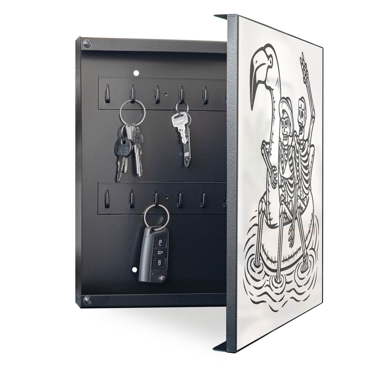 Schlüsselkasten Motiv Skelette mit Flamingoschwimmring 2